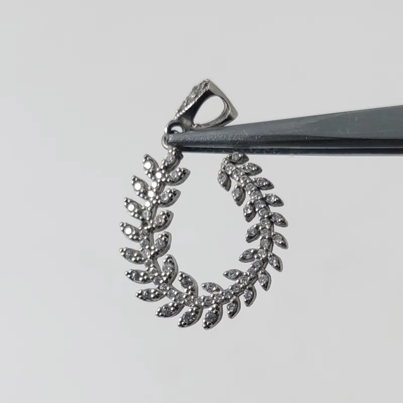 آویز نقره مدل شاخه زیتون خمیده (مخراجکاری شده)