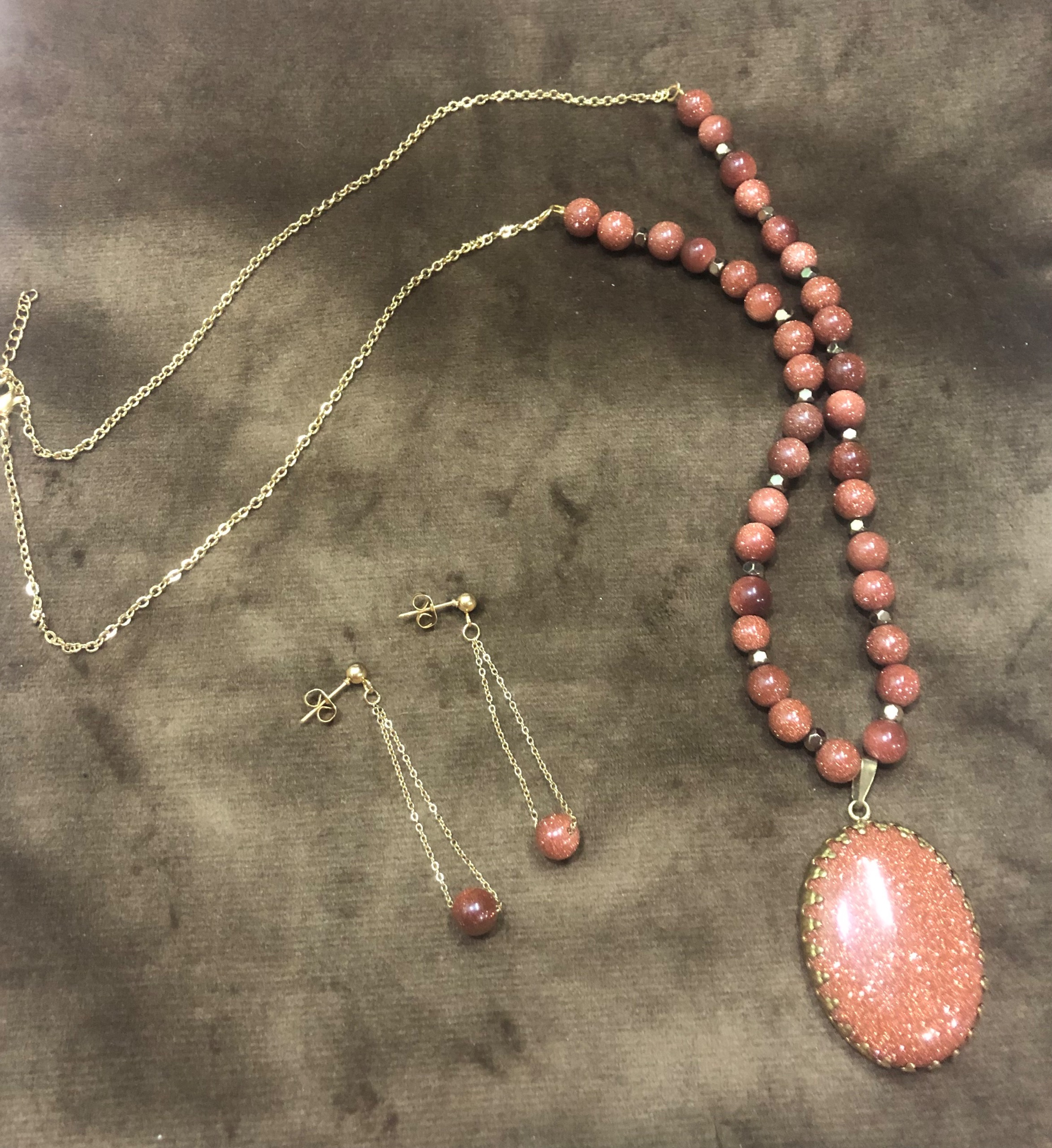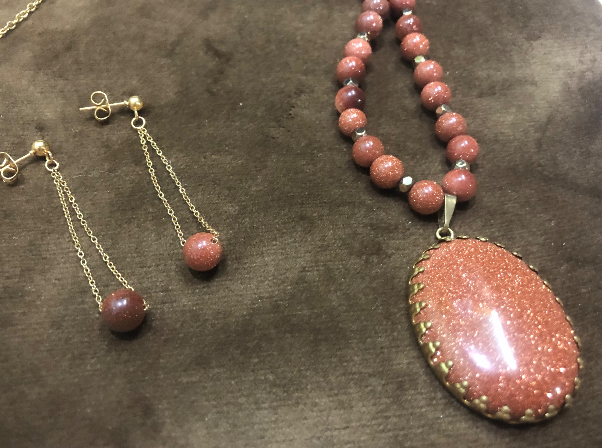 گردنبند و گوشواره سنگ عقیق دلربا قهوه ای اکلیلی