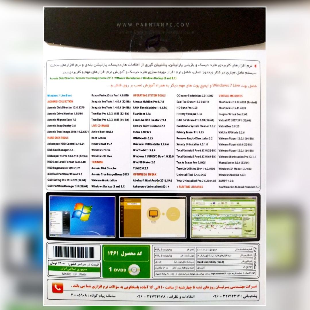 • شامل نرم افزارهای کاربردی مدیریت و بهینه سازی هارد دیسک، مدیریت و بازیابی اطلاعات پارتیشن و پشتیبان گیری از اطلاعات هارد دیسک