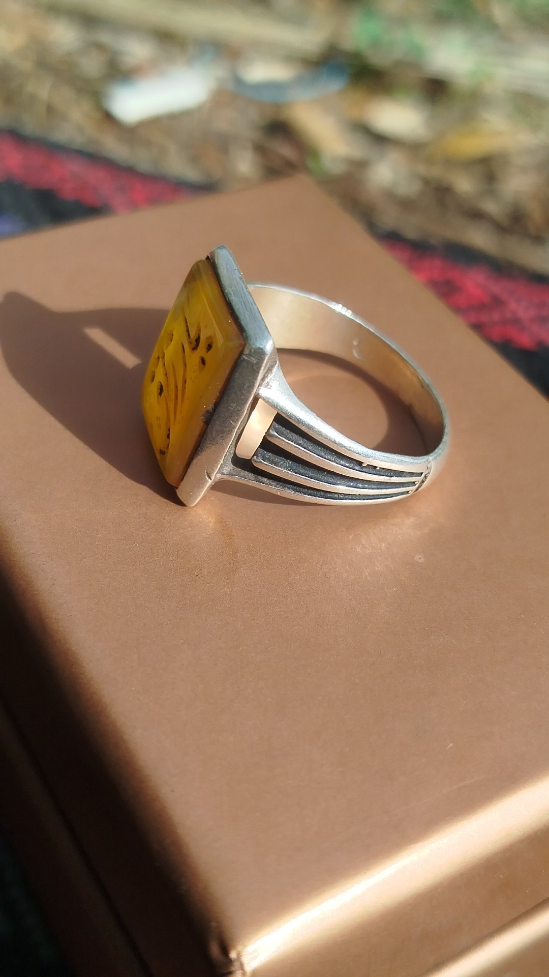 انگشتر نقره نگین خطی قدیمی و زیبا