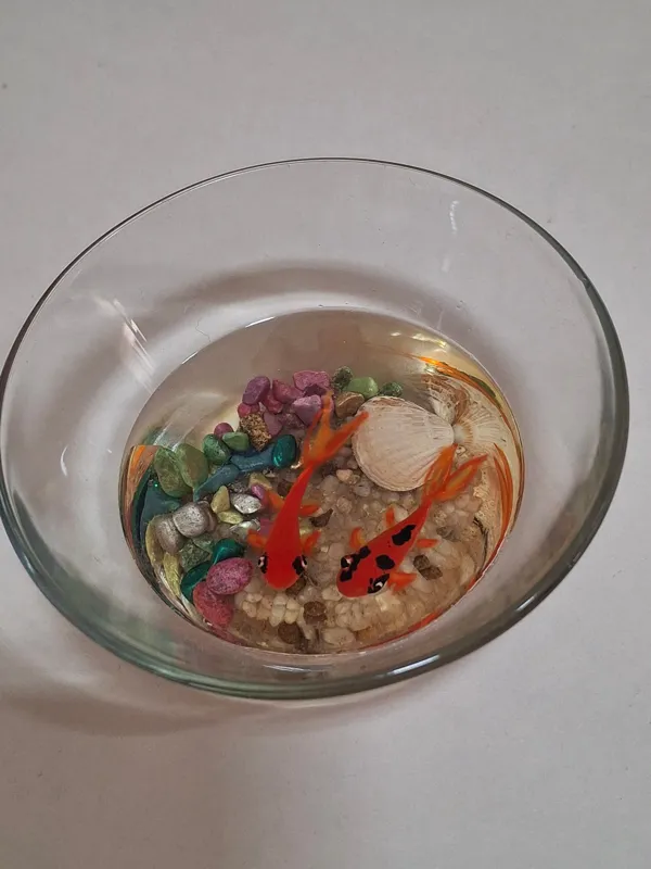 ماهی سه بعدی دستساز ، رزینی، تلفیق هنر نقاشی و مجسمه سازی و رزین .