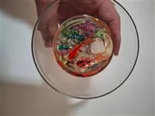 ظرفش بلور .و چون زیر ظرفش ترک داشته و من متوجه نشدم و توش کار درست کردم .ولی بعدا اون قسمت را به لایه رزین ریختم از بیرون و دیگه مشکلی نداره.زیرش هست و دیده هم نمیشه .دست هم کشیدم قسمت زیرش کاملا صافه..ولی برای همین علت خیلی خیلی پایینتر میفروشم این