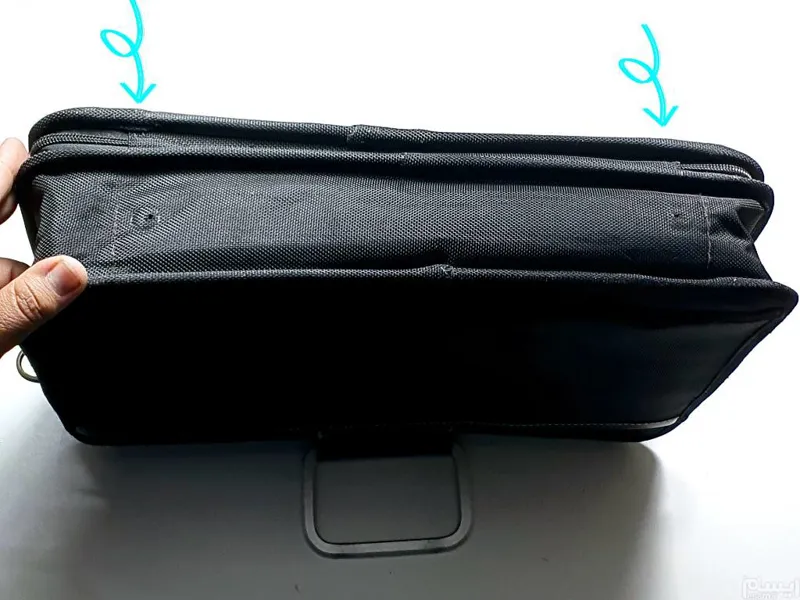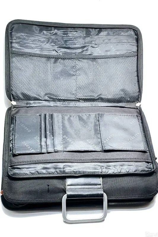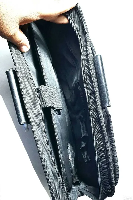 کیف لپ تاپ برزنتی،  خارجی با کیفیت عالی،  بدنه کیف مطابق تصویر دارای خط و خش ریز میباشد ، پایه های فلزی زیر کیف کنده شده که در تصویر آخر جاش مشخص میباشد