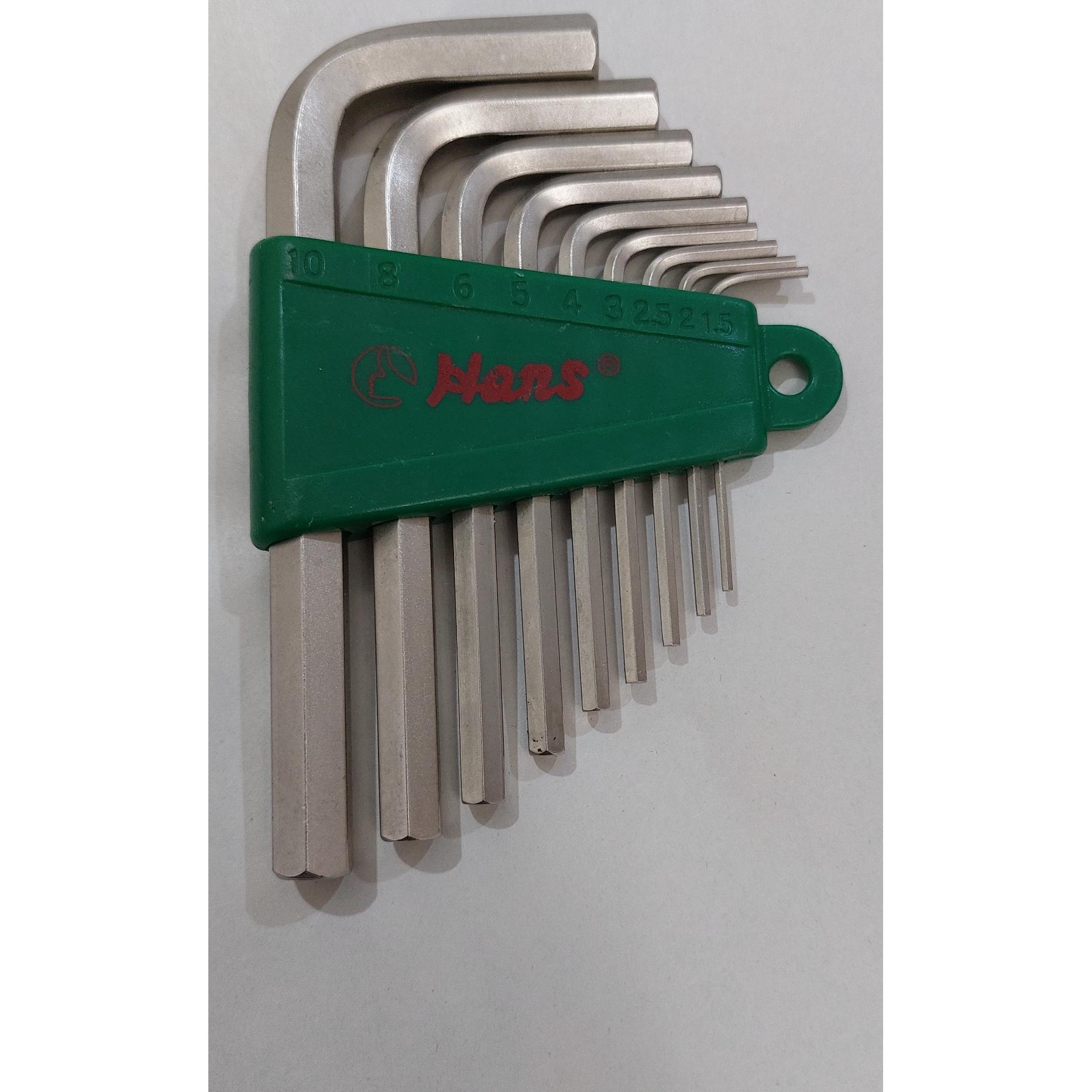 ست 9 تایی آچار آلن هنس سری قدیم از شماره 1/5 تا شماره 10 میلیمتر مخصوص کارگاه و مکانیکی