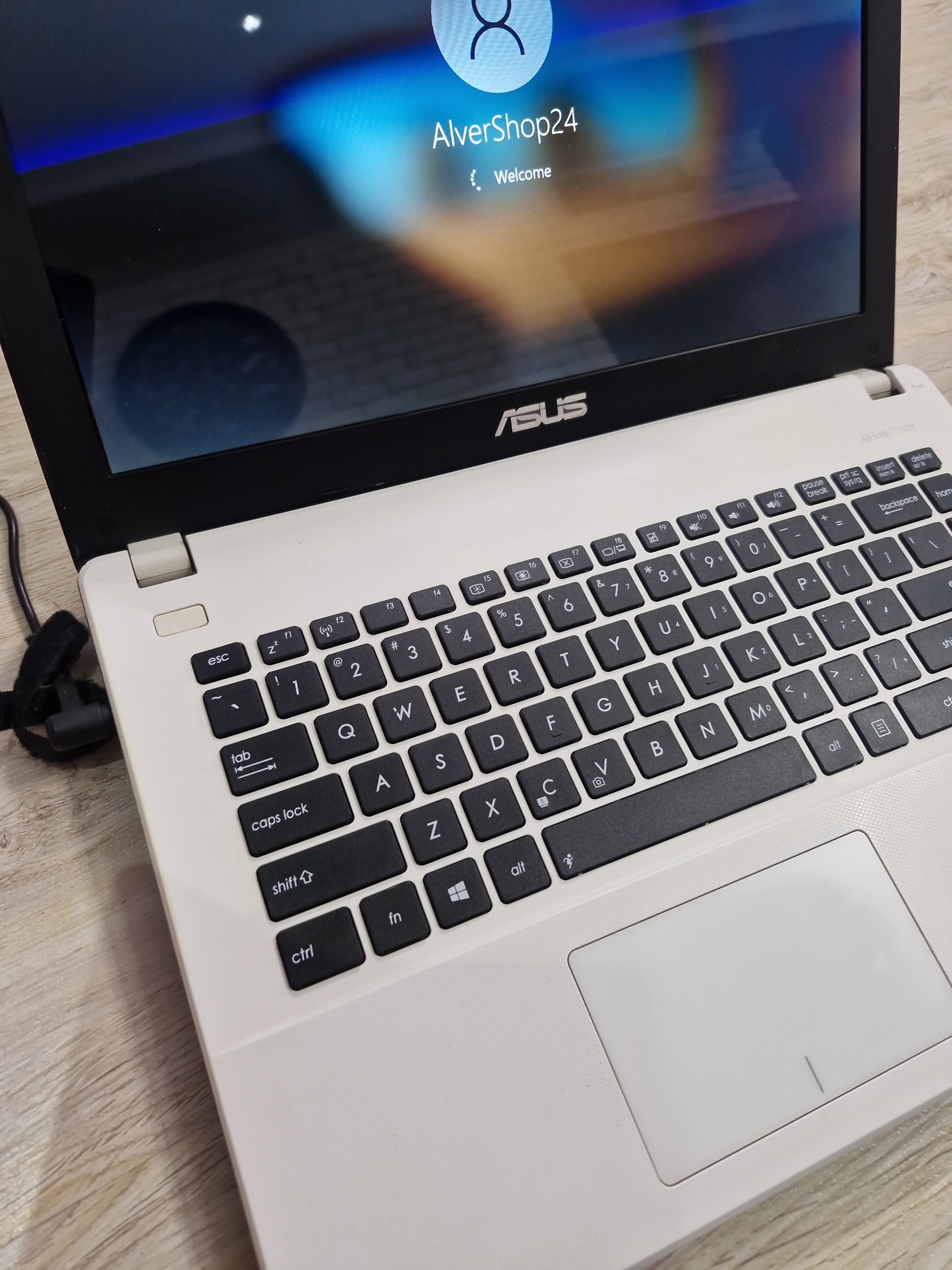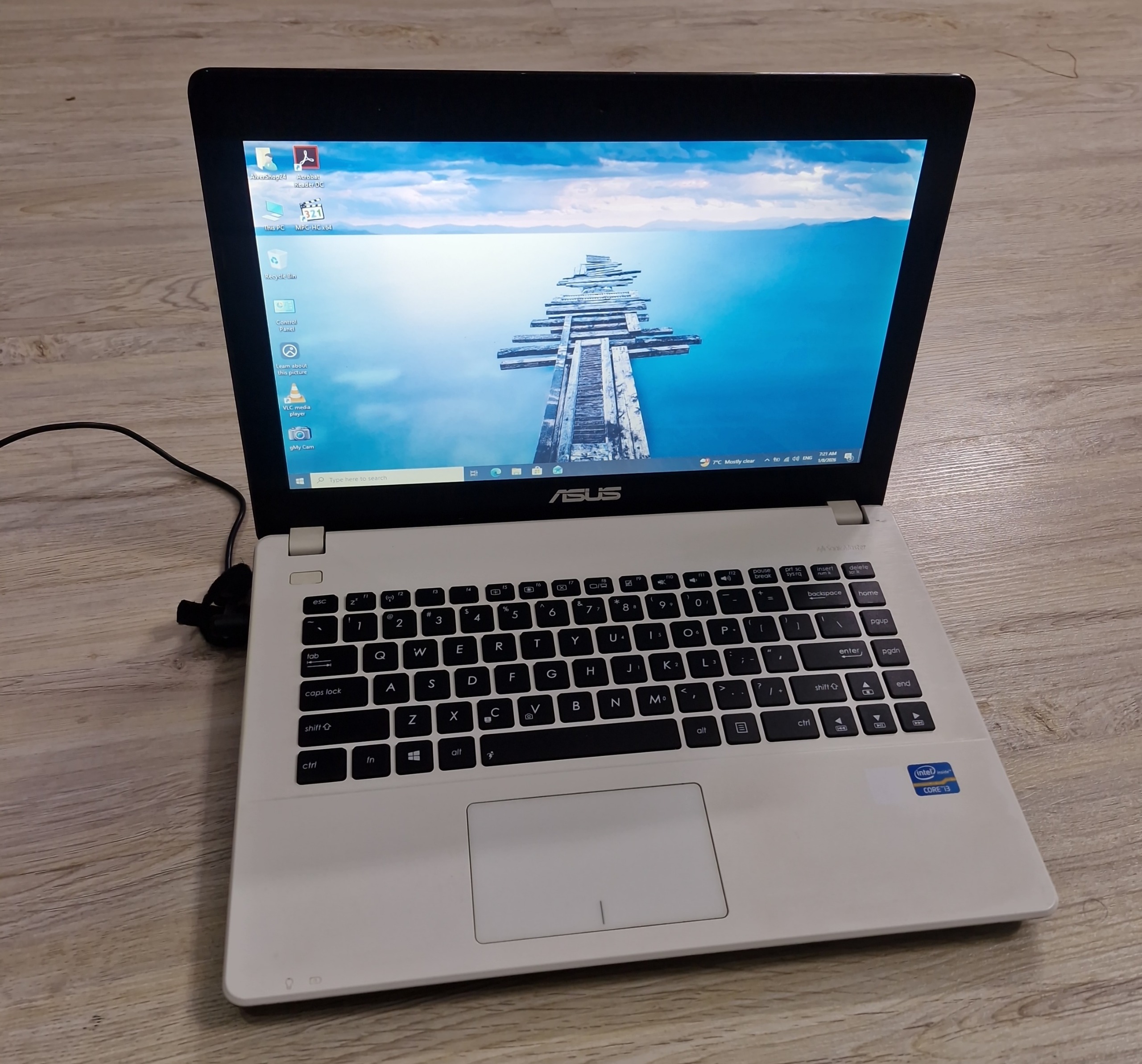 یک دستگاه لپ تاپ ایسوس ، قاب اصلی سفید صدفی و کیبورد مشکی اطراف سفید 14.1 اینچ