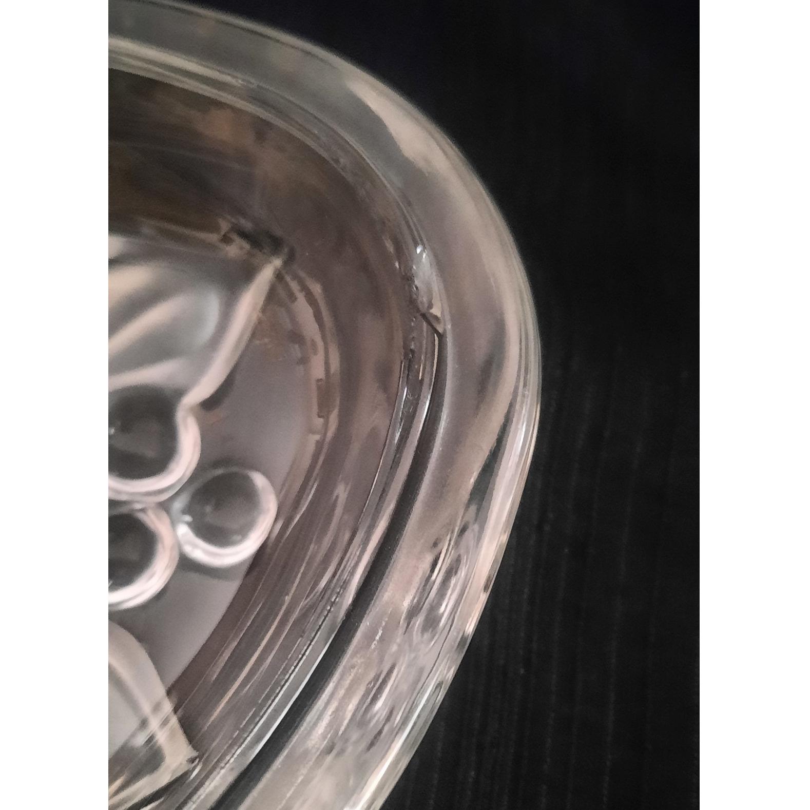 شکلات خوری بینی گل انگوری پشت برجسته آلمان دو عدد موجود است فقط هر دو ایراد دارند یکیشون در دو لبه خارجی و داخلی با دست کشیدن ناصافی هایی که پریدگی میلیمتری هست احساس میشود و دیگری لبه داخلی یک لبپری یک سانتی دارد و در یکی دو جا ناصافی علت قیمت پایین همین ایراد است