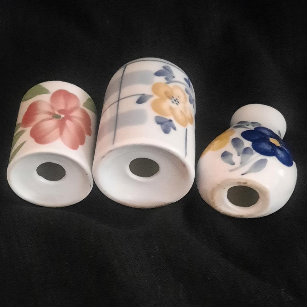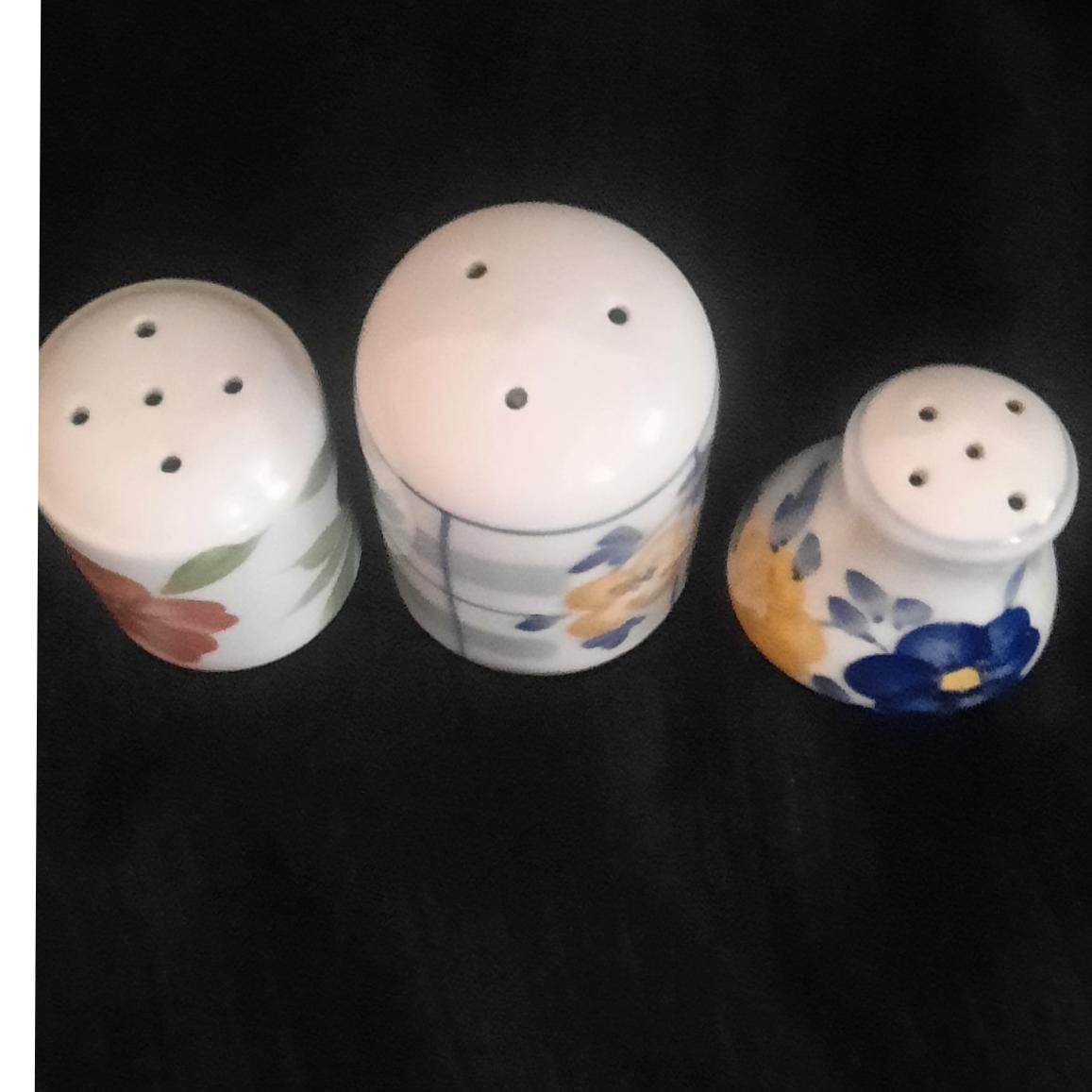 سه عدد نمکدان گل پنبه مدل و طرحهای مختلف در سه سایز ته ندارند سالم دست دوم