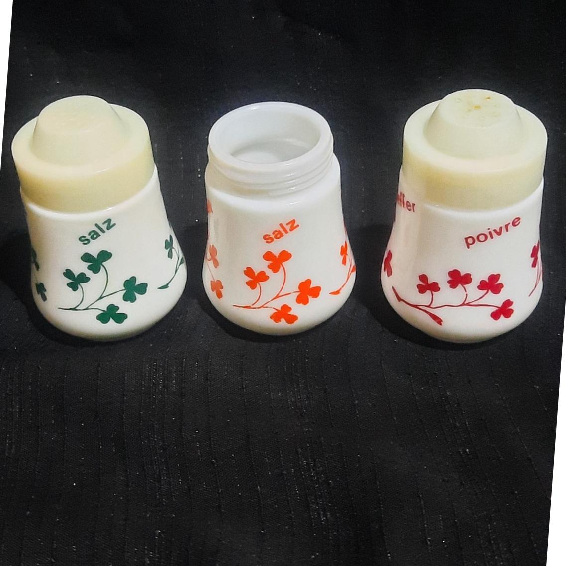 سه عدد نمکدان که یکی درب ندارد و حساب نشده دست دوم بارفتن زیرش حک شده ایتالیا عمر 60 سال
