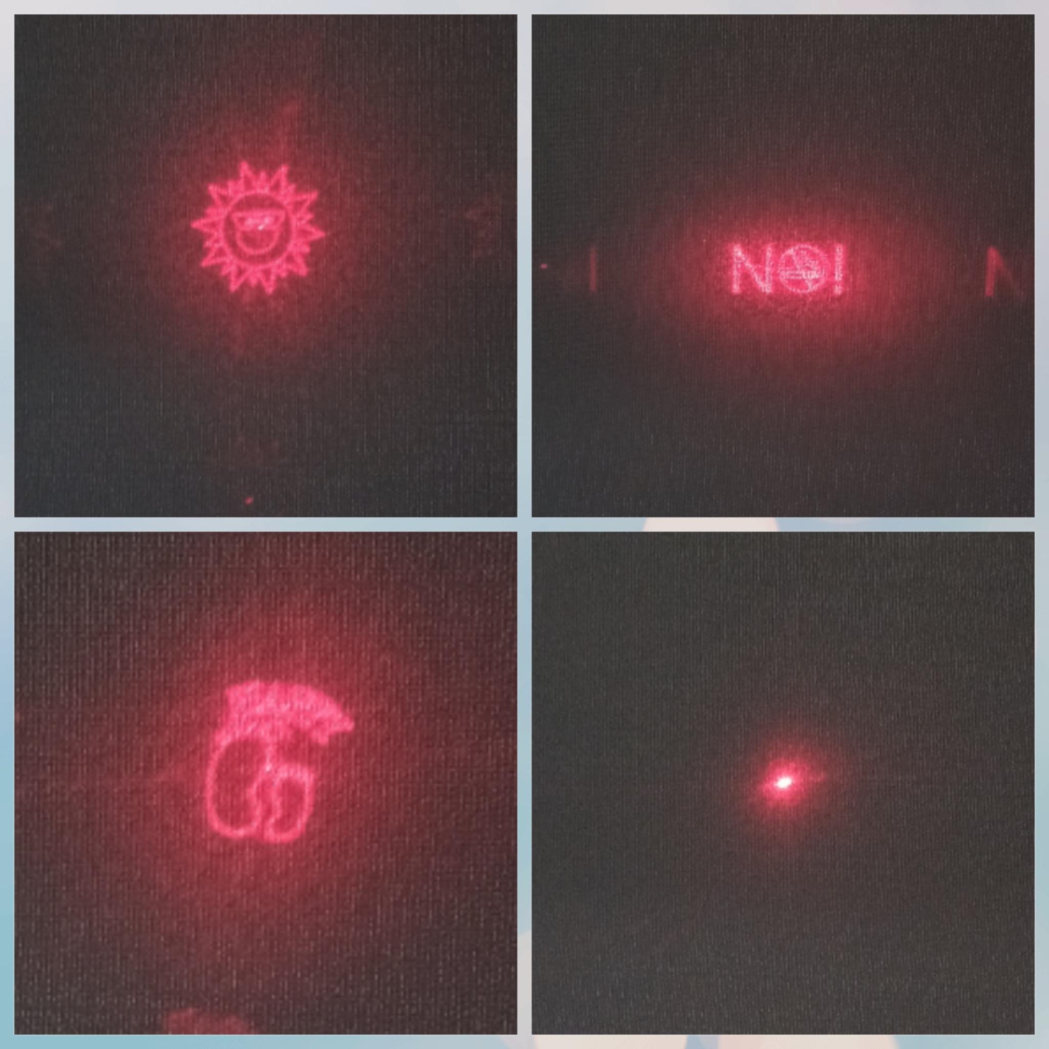 لیزر هم داره که لنز گردون داره با 4 تصویر و نقطه ای که چندین متر برد داره