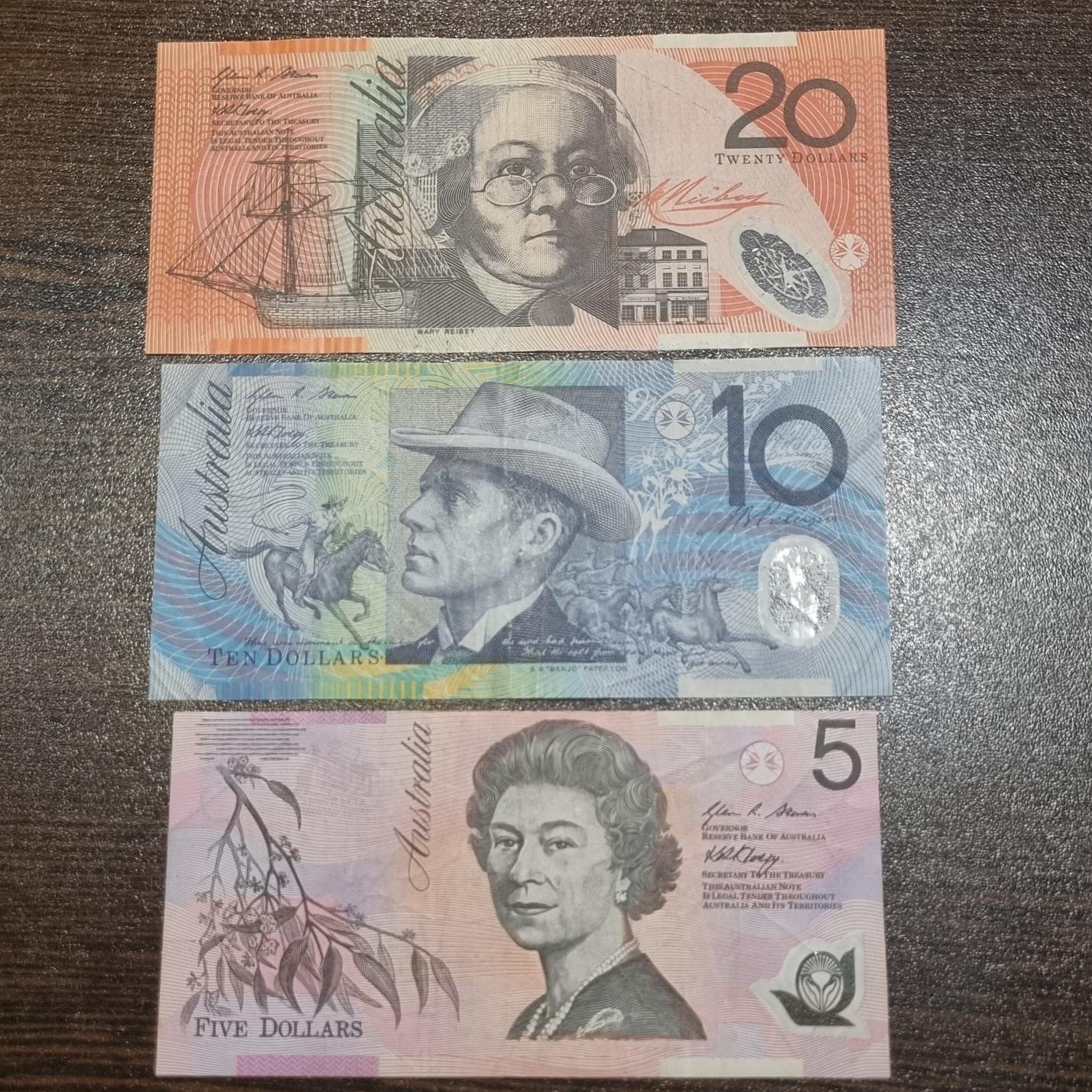 ارز رایج کشور استرالیا میباشد و همگی پلیمری و مناسبتی و متفاوت از 5و10و20 پلیمری معمولی،