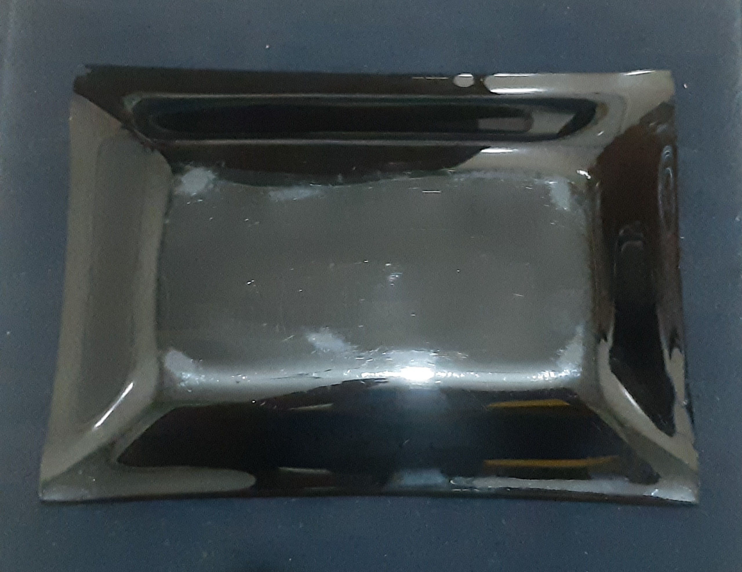 روی آن طرحهای طلایی و سفید زیبایی کار شده و ظرف در مرکز صاف و در انتها انحنا دارد. ابعاد: 6-7/8 اینچ در 4-7/8 اینچ.