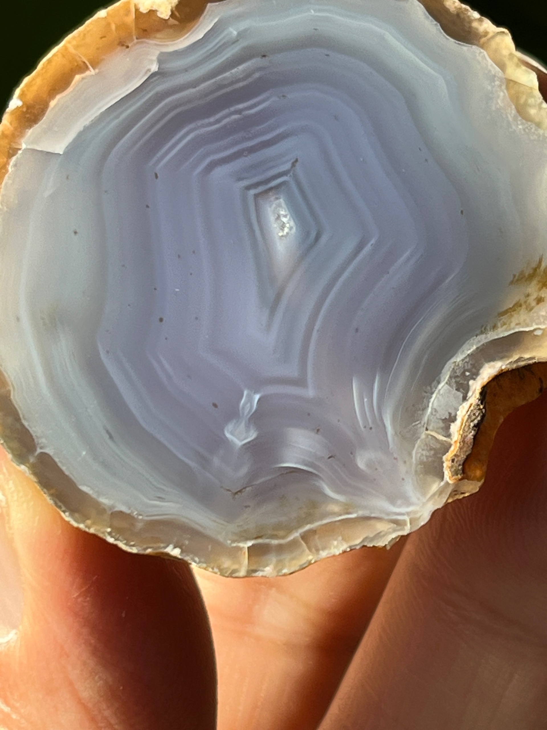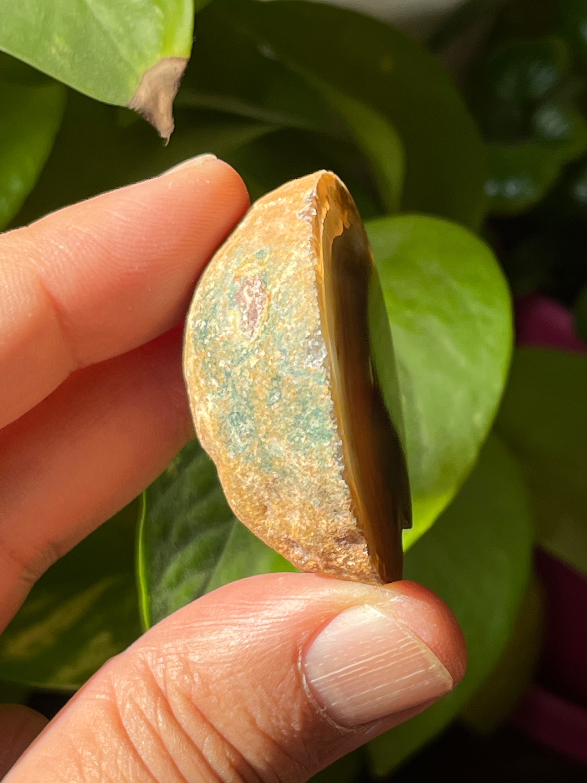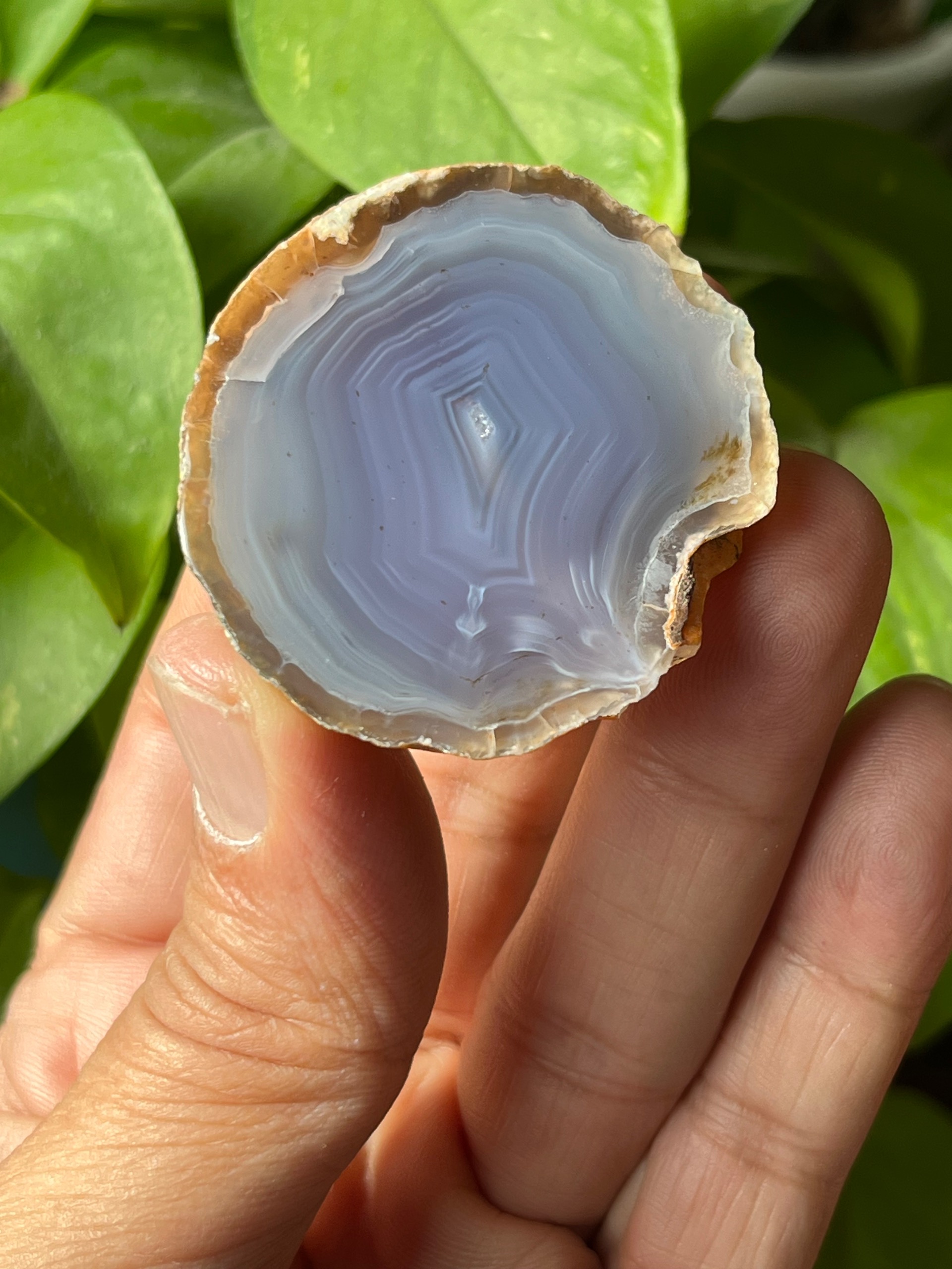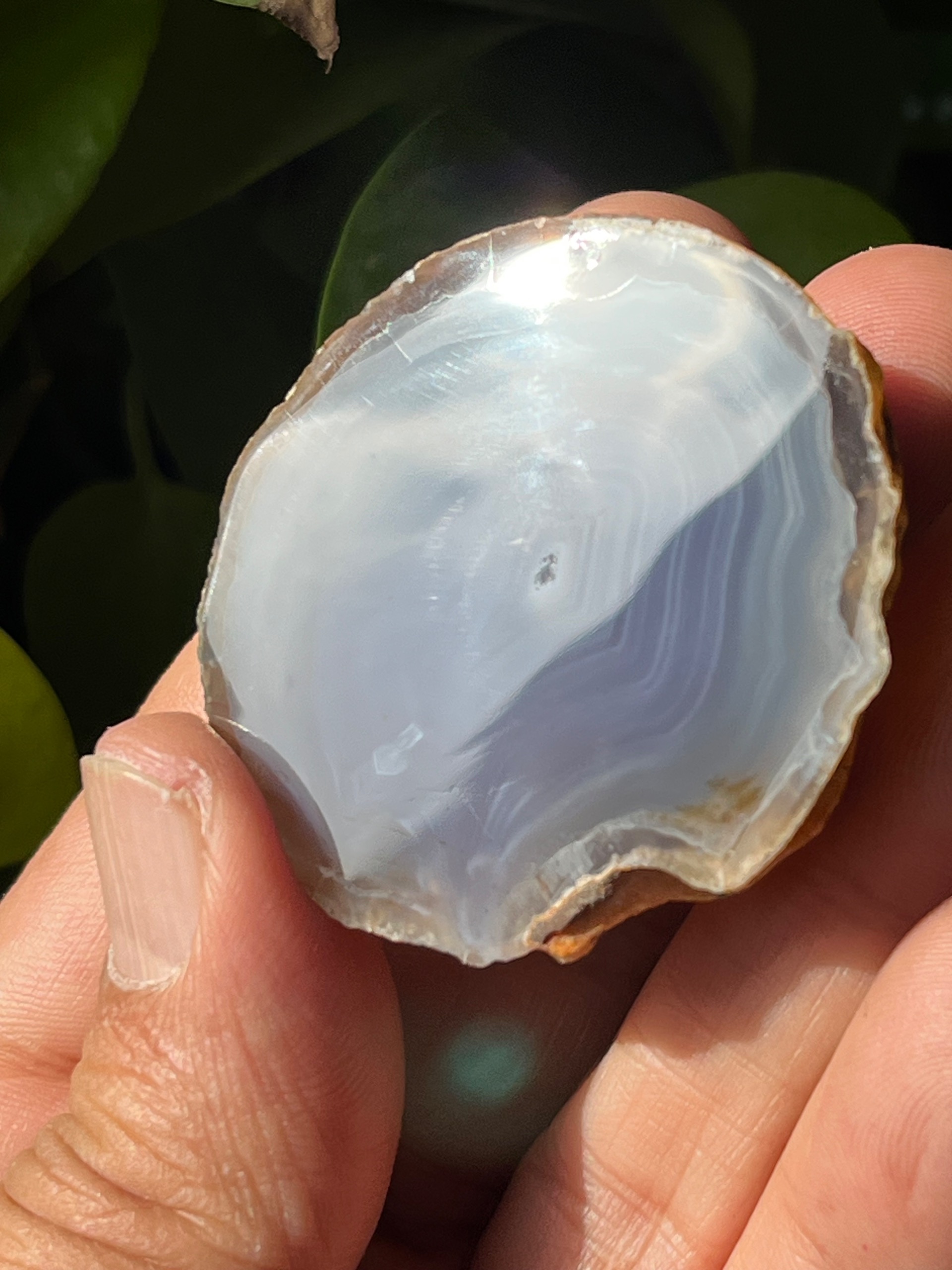 نیم توپی عقیق سلیمانی با نقش بسیار دیدنی و ترکیب رنگ دلنشین یاسی کبود