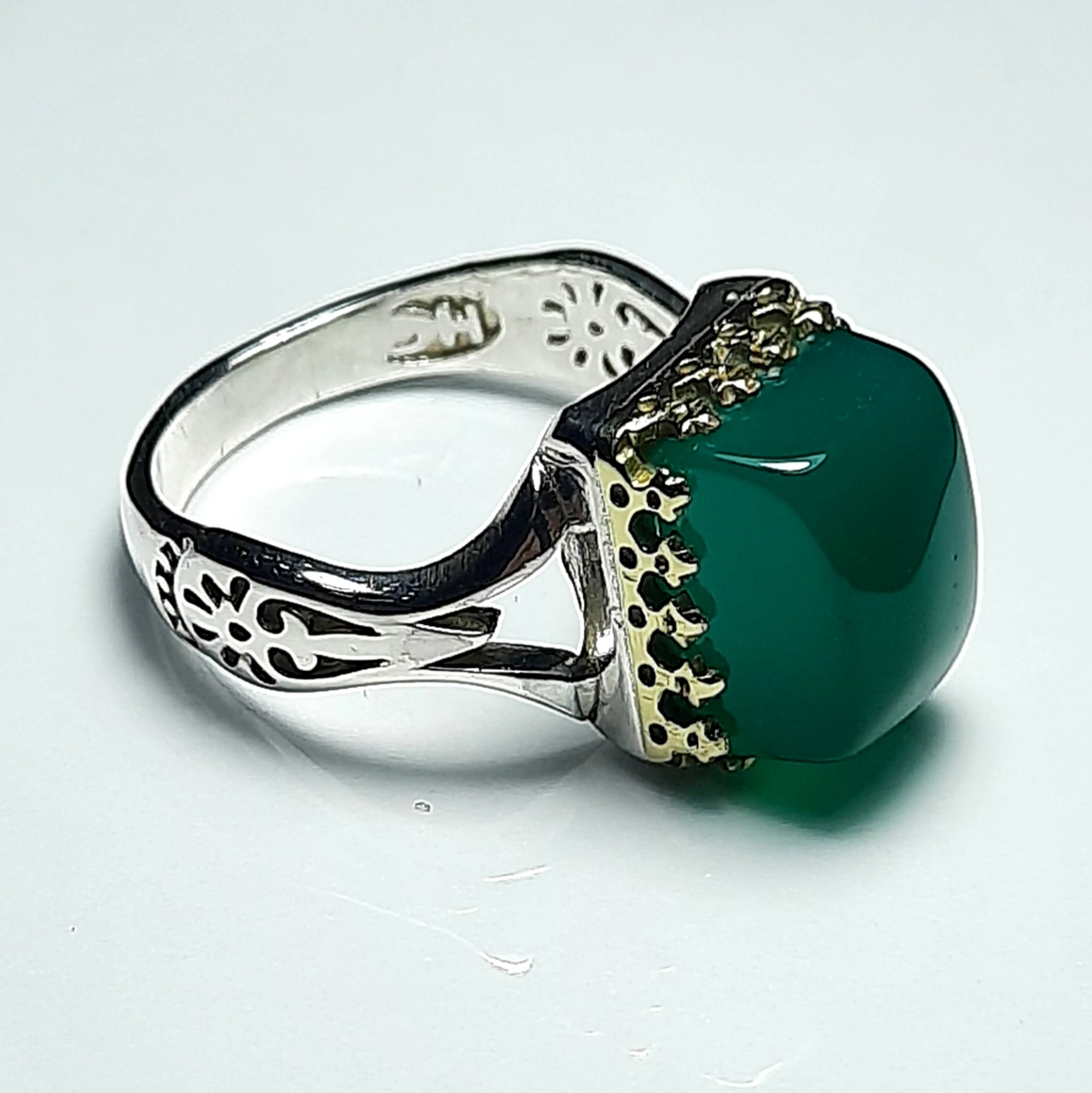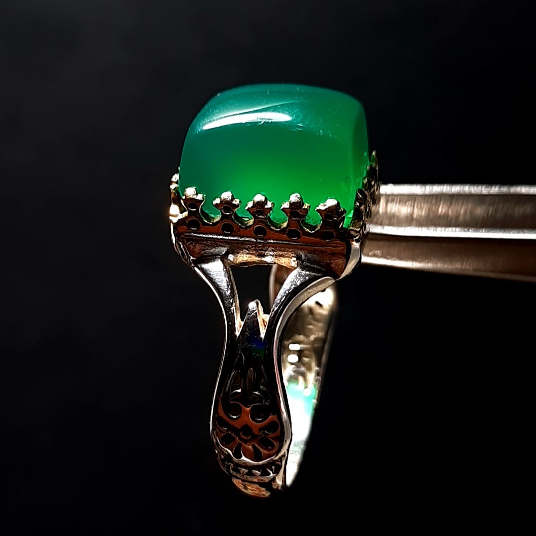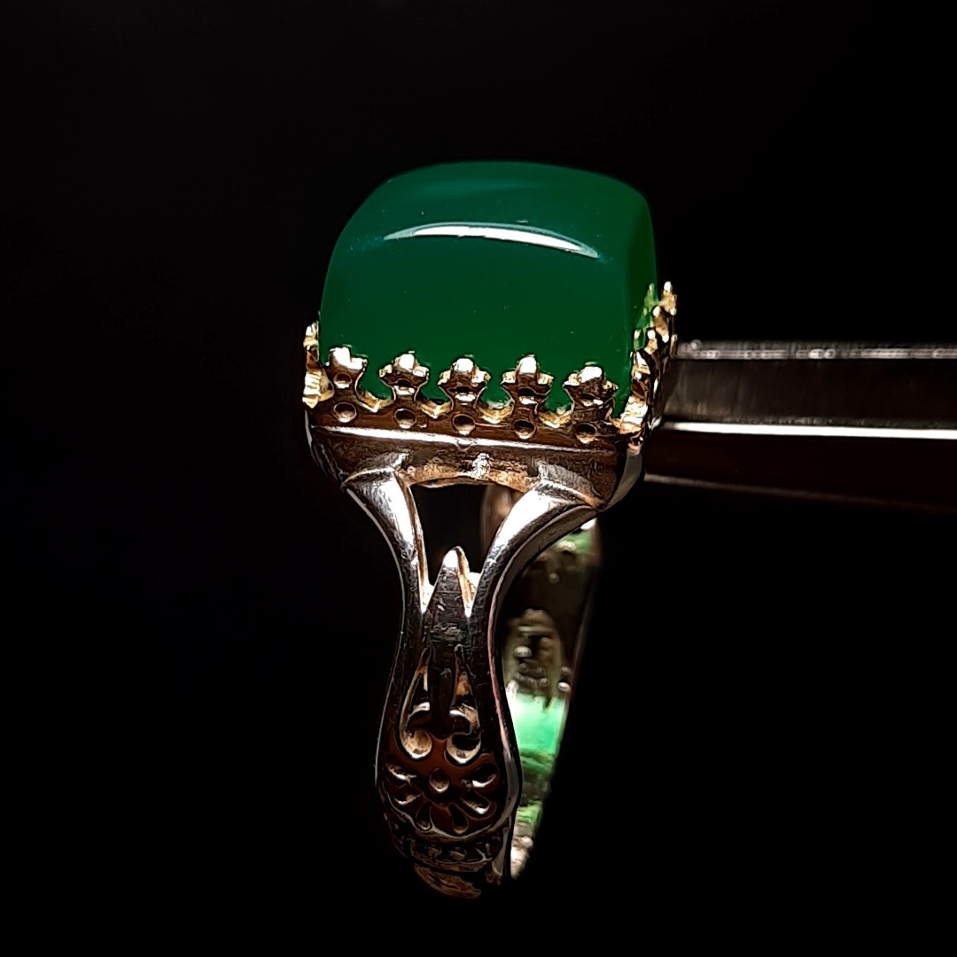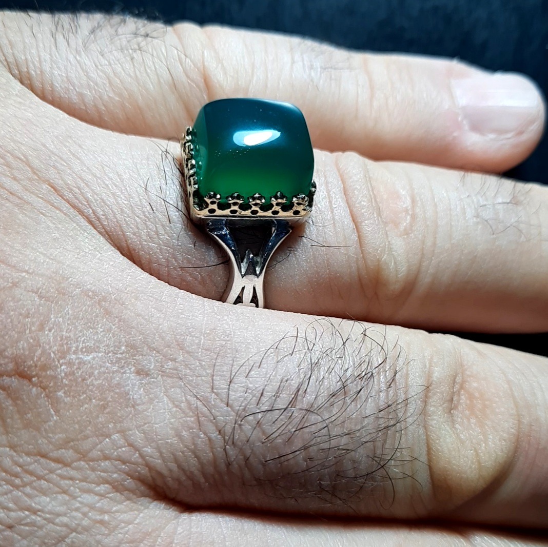 انگشترنقره مردانه بسیارزیباباکیفیت عالی،مزین به عقیق سبزآبدارمعدنی خراسان،