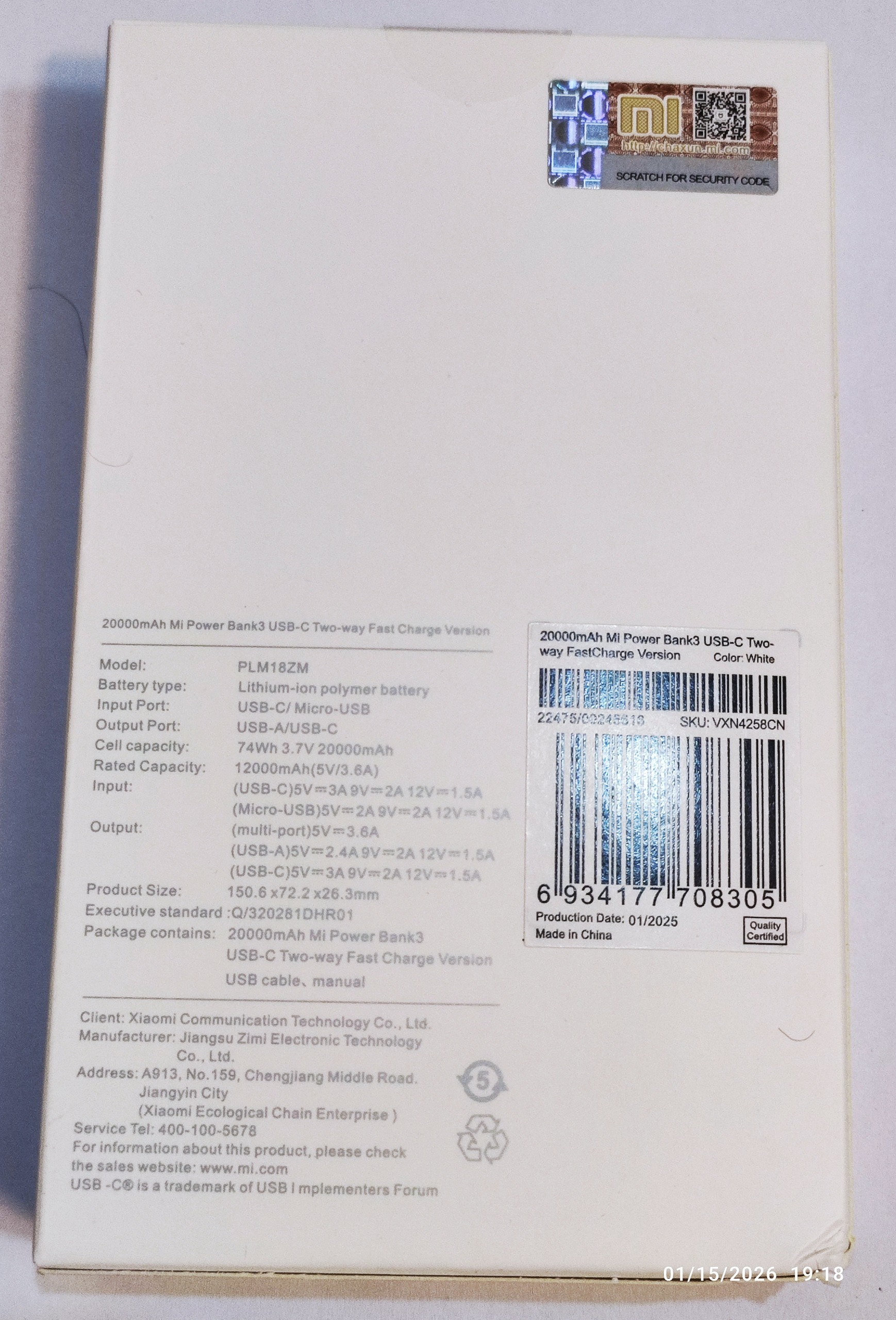 پاوربانک 20000 شیائومی فست شارژ کیفیت عالی