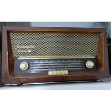 رادیو چوبی قدیمی یک عدد لامپش سوخته، بدنه سالم