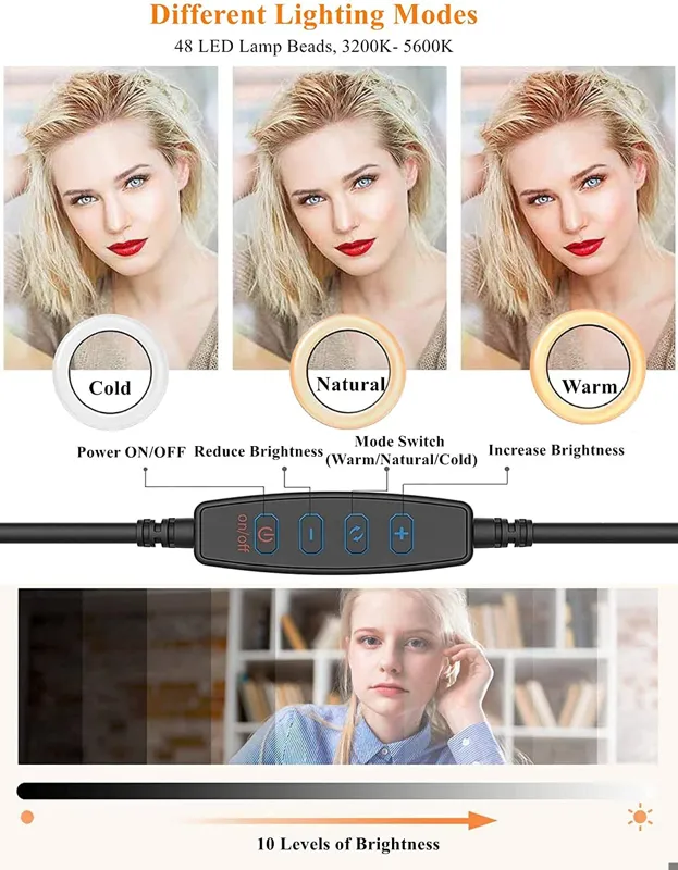 برای ویدئو کنفرانس با لپ تاپ و کامپیوتر همچنین کلاس های آنلاین چراغ های دایره ای برای ضبط ویدئو، زوم تماس های جلسه، پخش زنده، آرایش