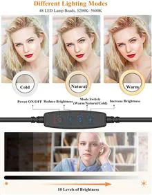 دمای رنگ و روشنایی: گرم گرم، سفید گرم، سفید طبیعی، نور روز، سفید سرد، 5 سطح روشنایی، 5 حالت برای شبیه سازی نور طبیعی خورشید برای انتخاب آزاد شما برای دریافت نور عالی و بصری طبیعی تر.