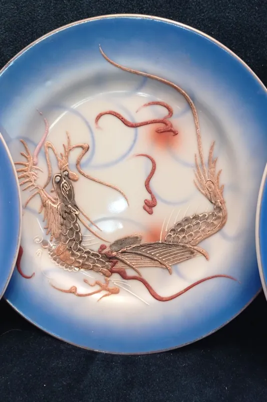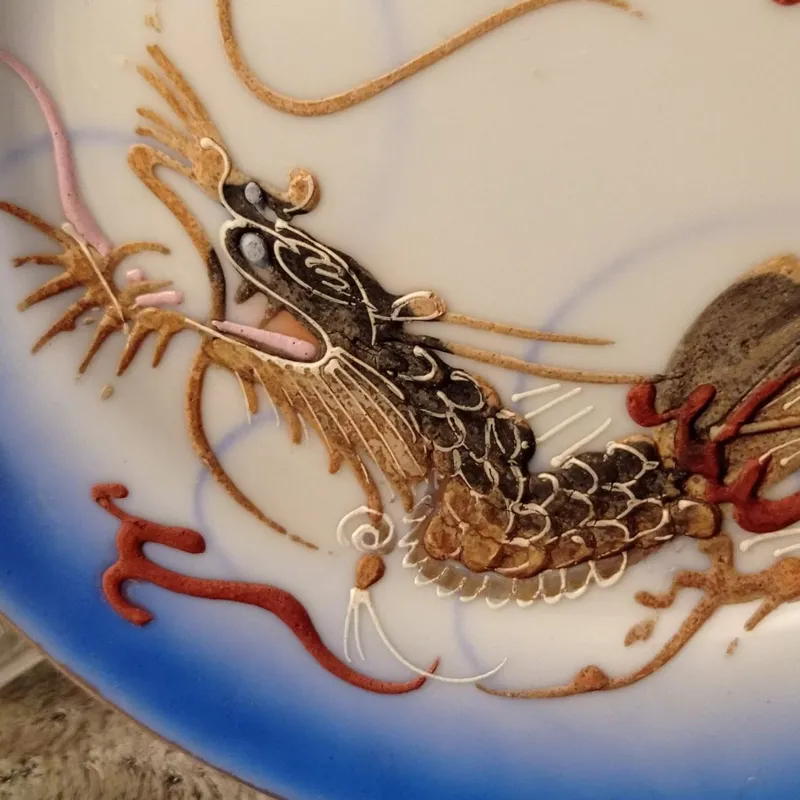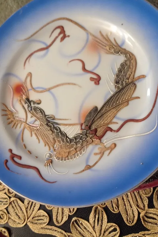 یه کاره بی نظیر واقعا بی نظیر.هرکس بخره واقعا یه کار بی همتا خریده.قدمت بالایه 80 سال.ژاپن قدیمی.6 عدد سالم و بی عیب با قلم آبی فوق العاده زیبا.نقش های برجسته همه سالم.بیایین بخرید.اینارا همه تکی دارند.اژدها نماد خیر و برکت و شُکوندار.