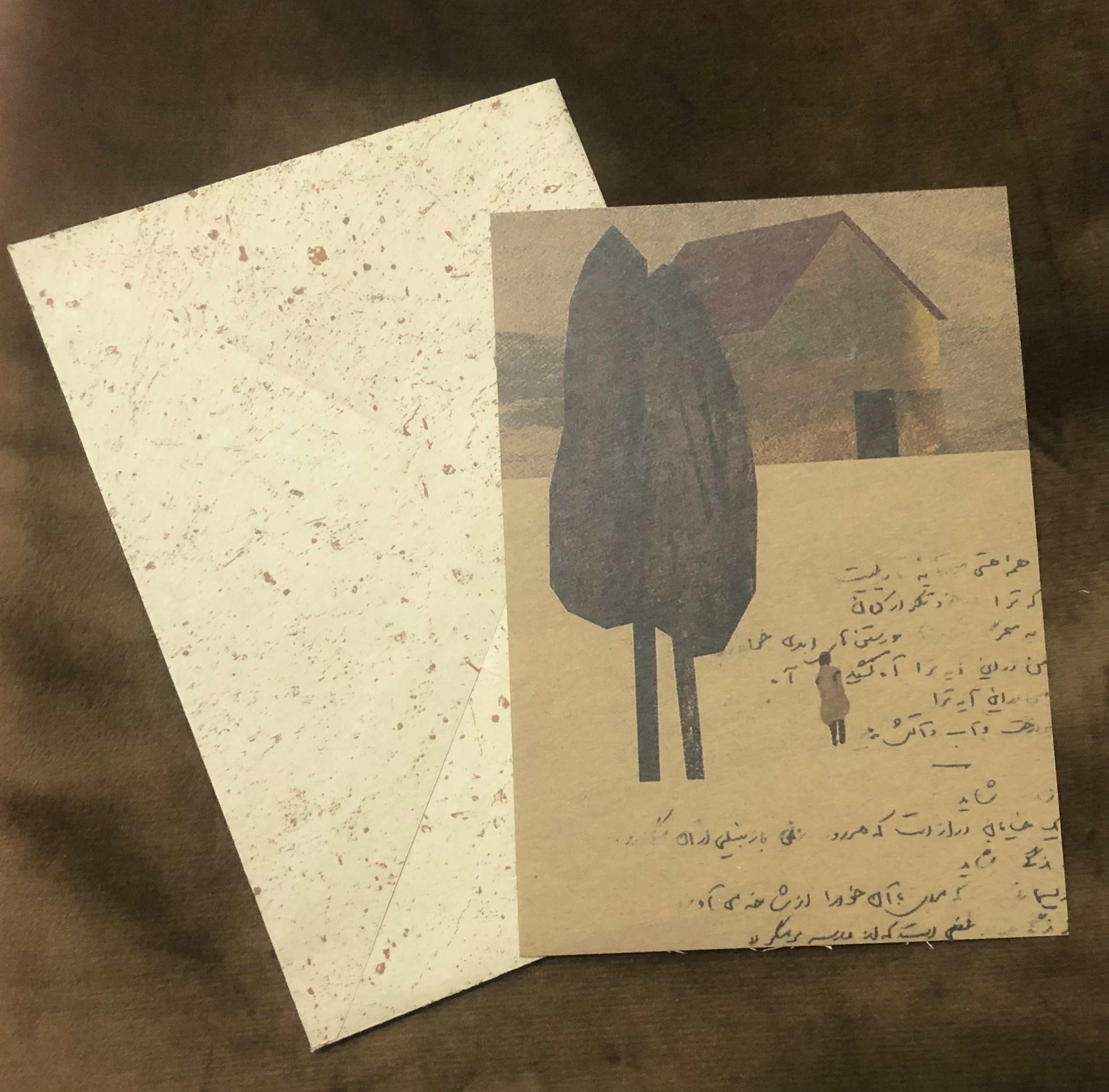 کارت پستال فانتزی طرح درخت و خانه merrix