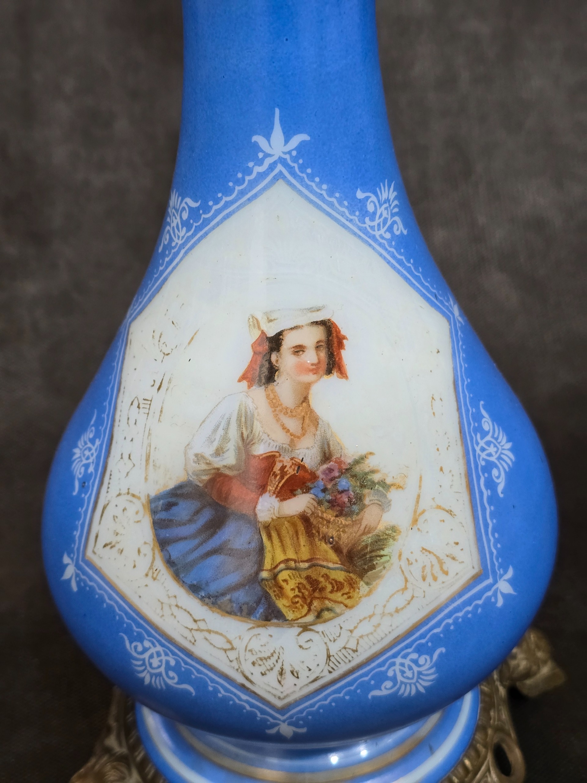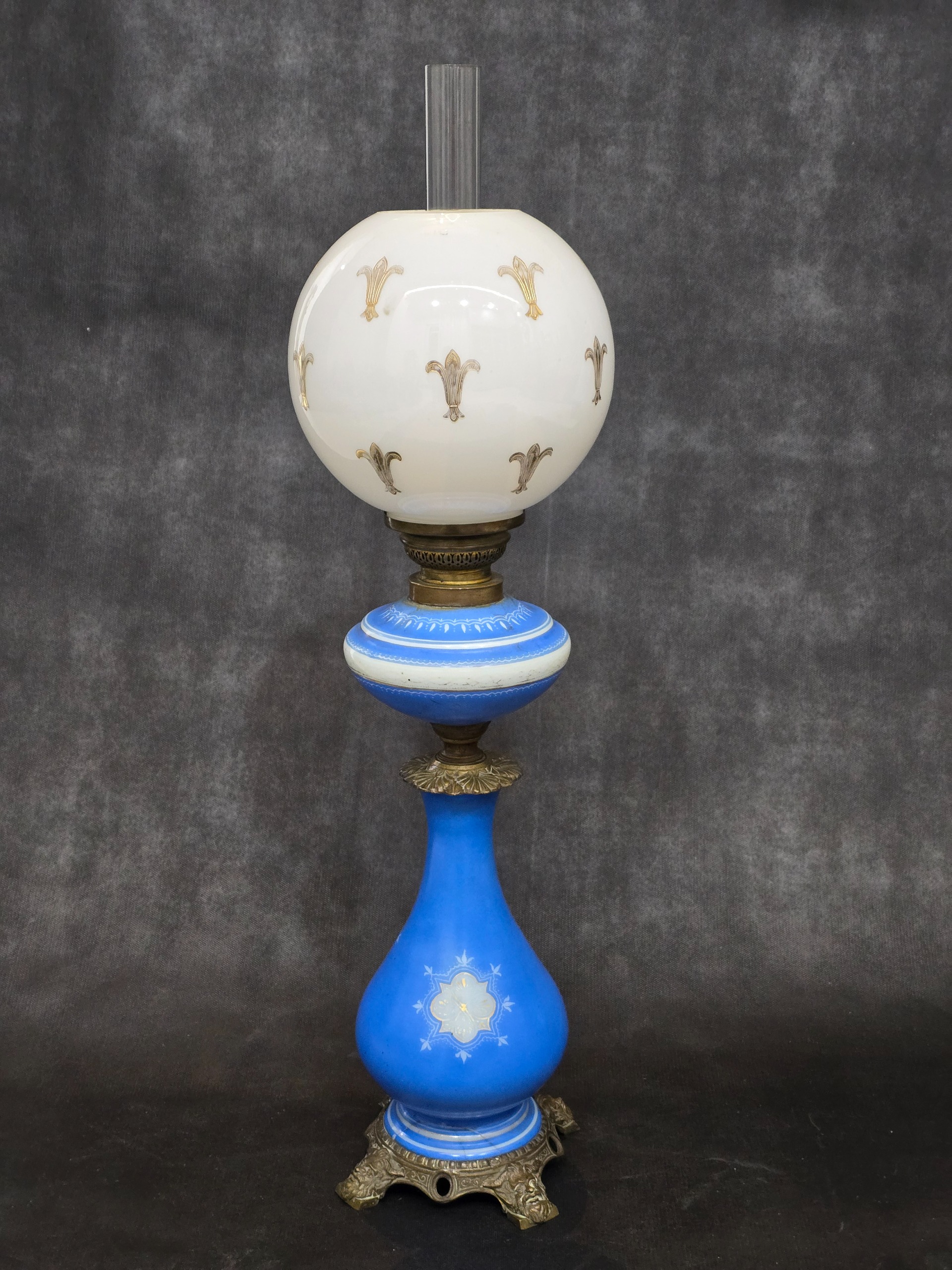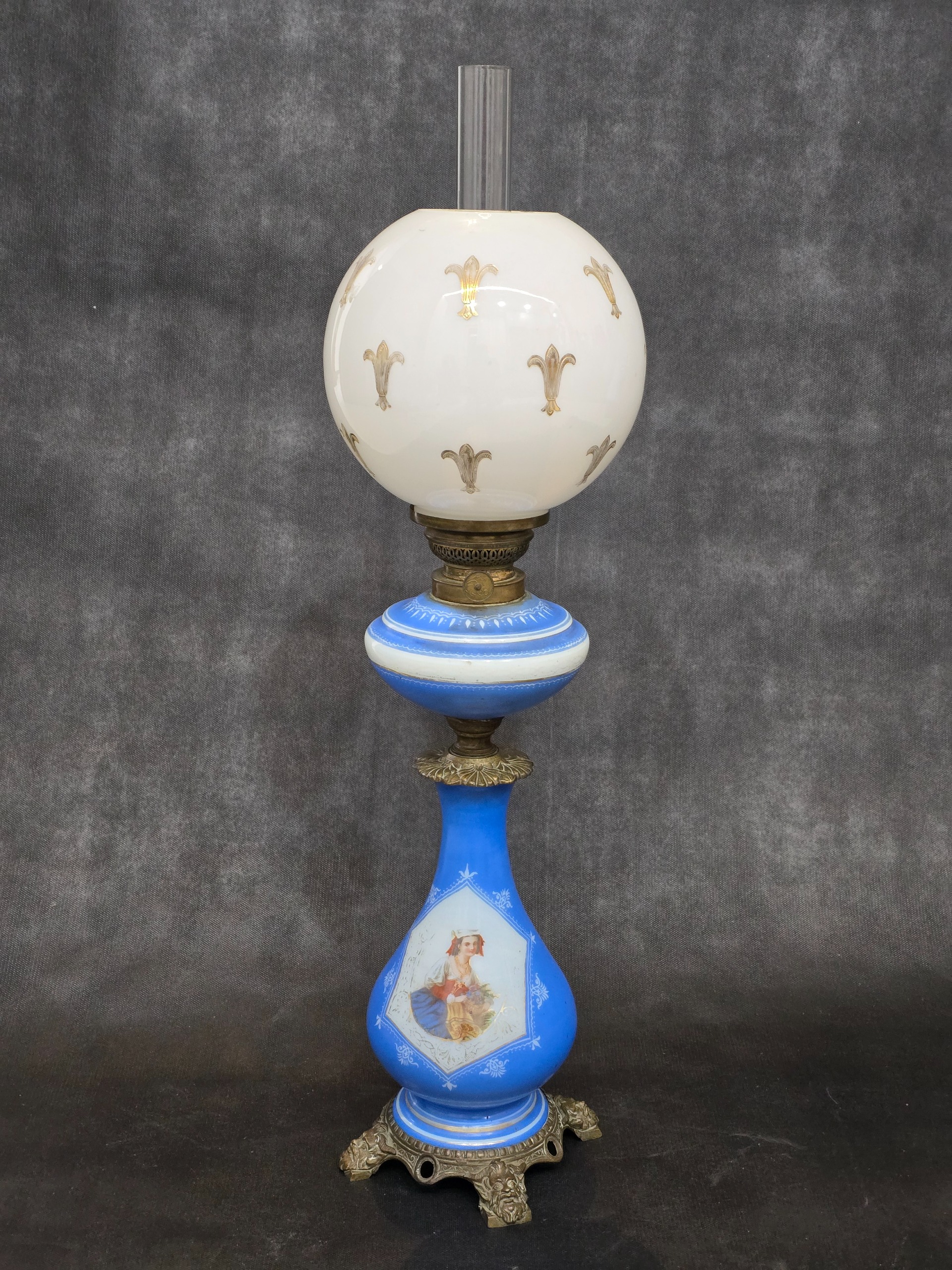 چراغ نفتی سایزبزرگ اپالین فرانسه آنتیک ارتفاع کل72