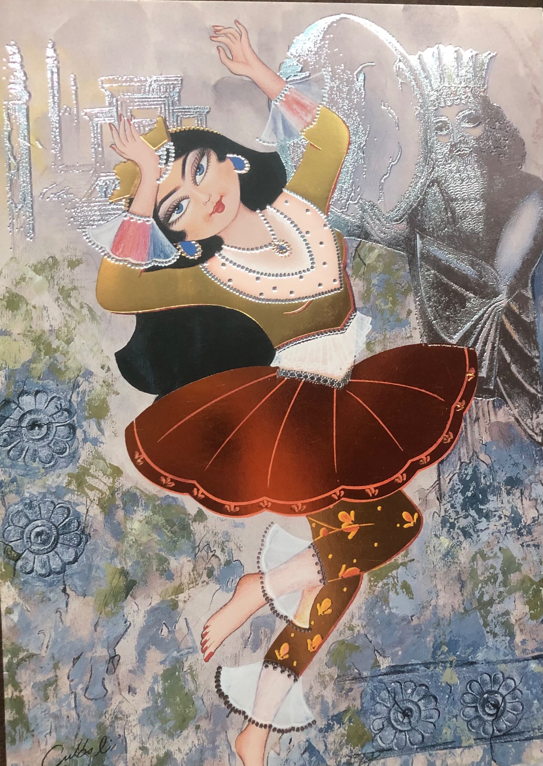 کارت پستال بزرگ زرکوب براق طرح سنتی خاتون