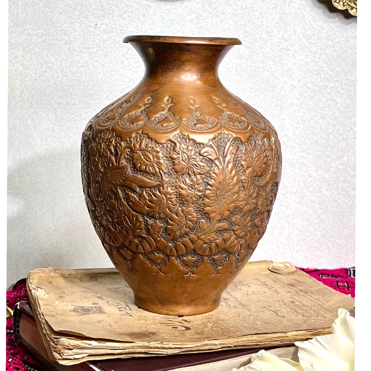 گلدان آنتیک و کلکسیونی سایز بزرگ به ارتفاع 23 سانتی متر با قلم دست اساتید دوره پهلوی .