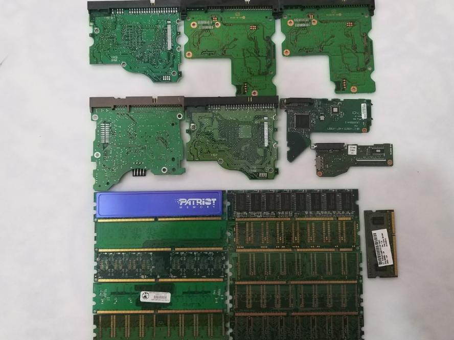 مطابق تصاویر تعدادی برد هارد و رم قدیمی مناسب برای بازیافت فلزات گرانبها