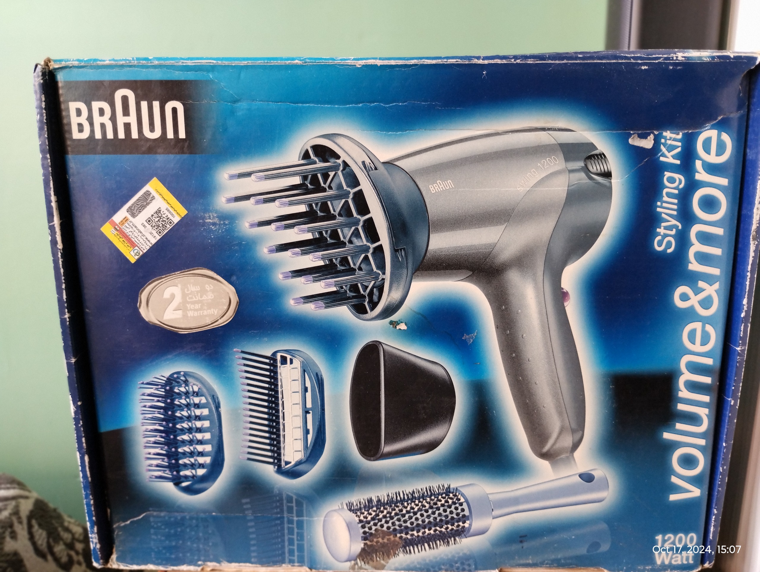 سشوار براون همراه با دو مدل شانه و یک دیسپانسر باریک و سری متمرکز کننده