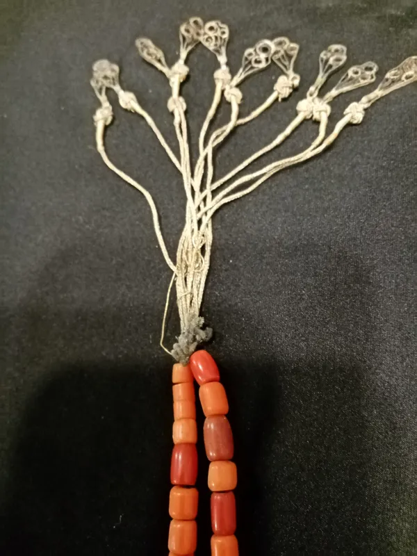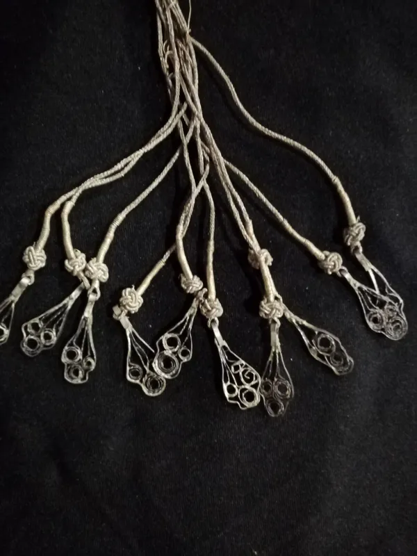 منگوله با نخ نقره بافت و سر منگوله با نقش تقریبا ترمه از جنس نقره