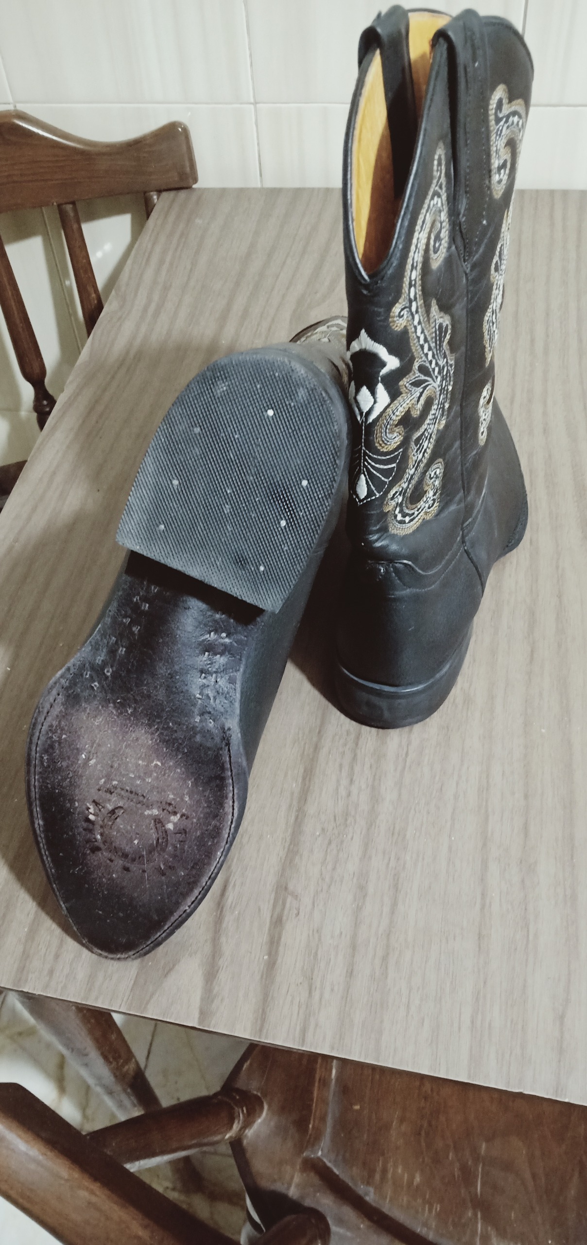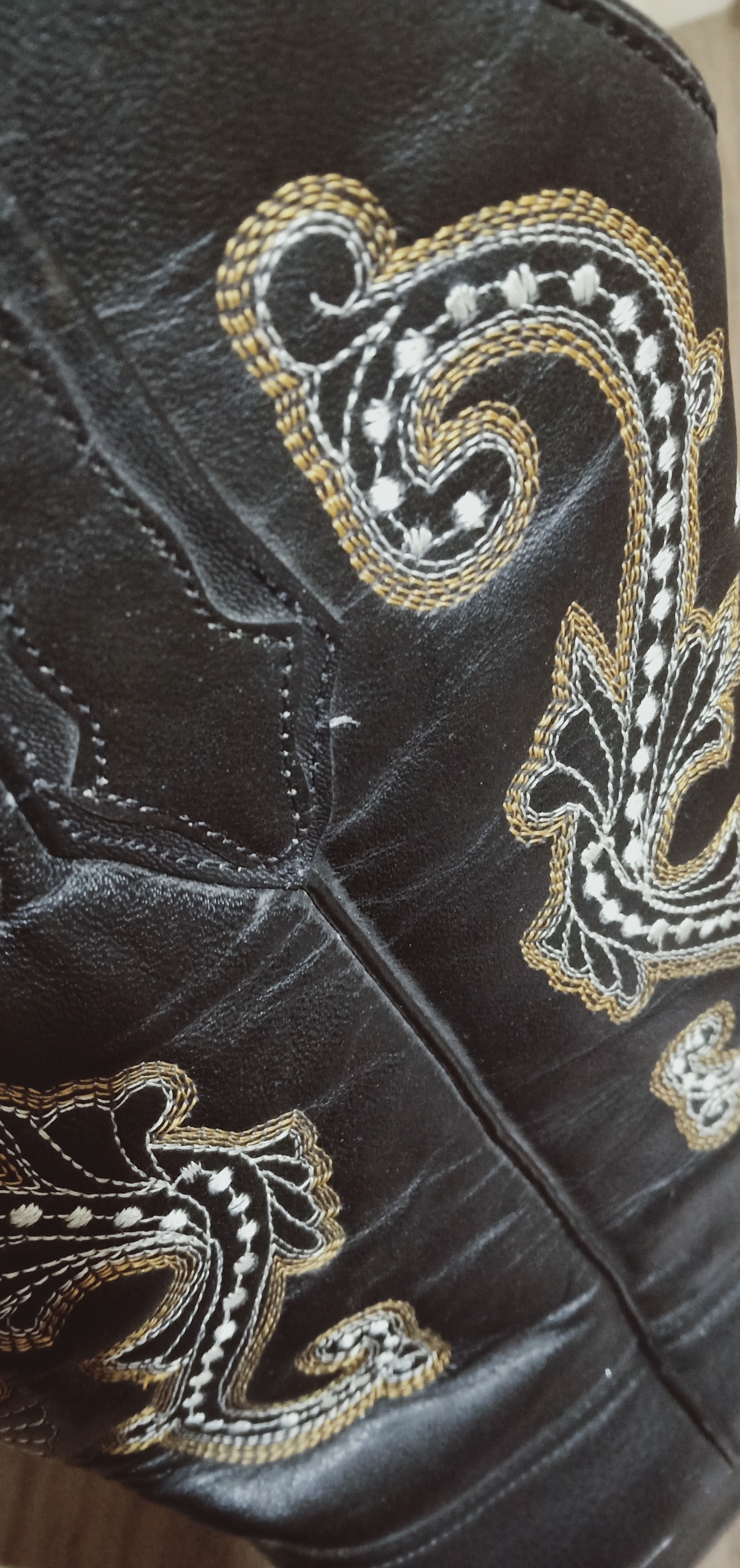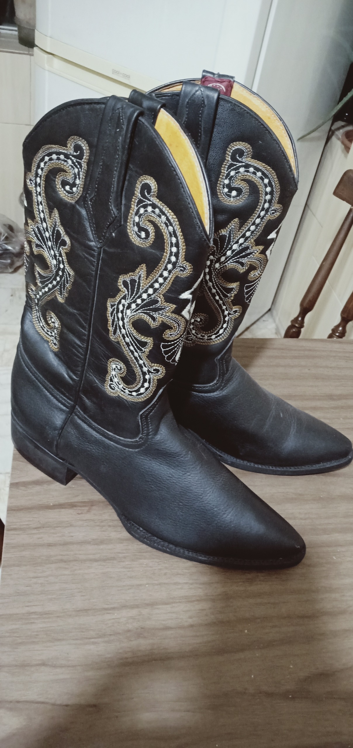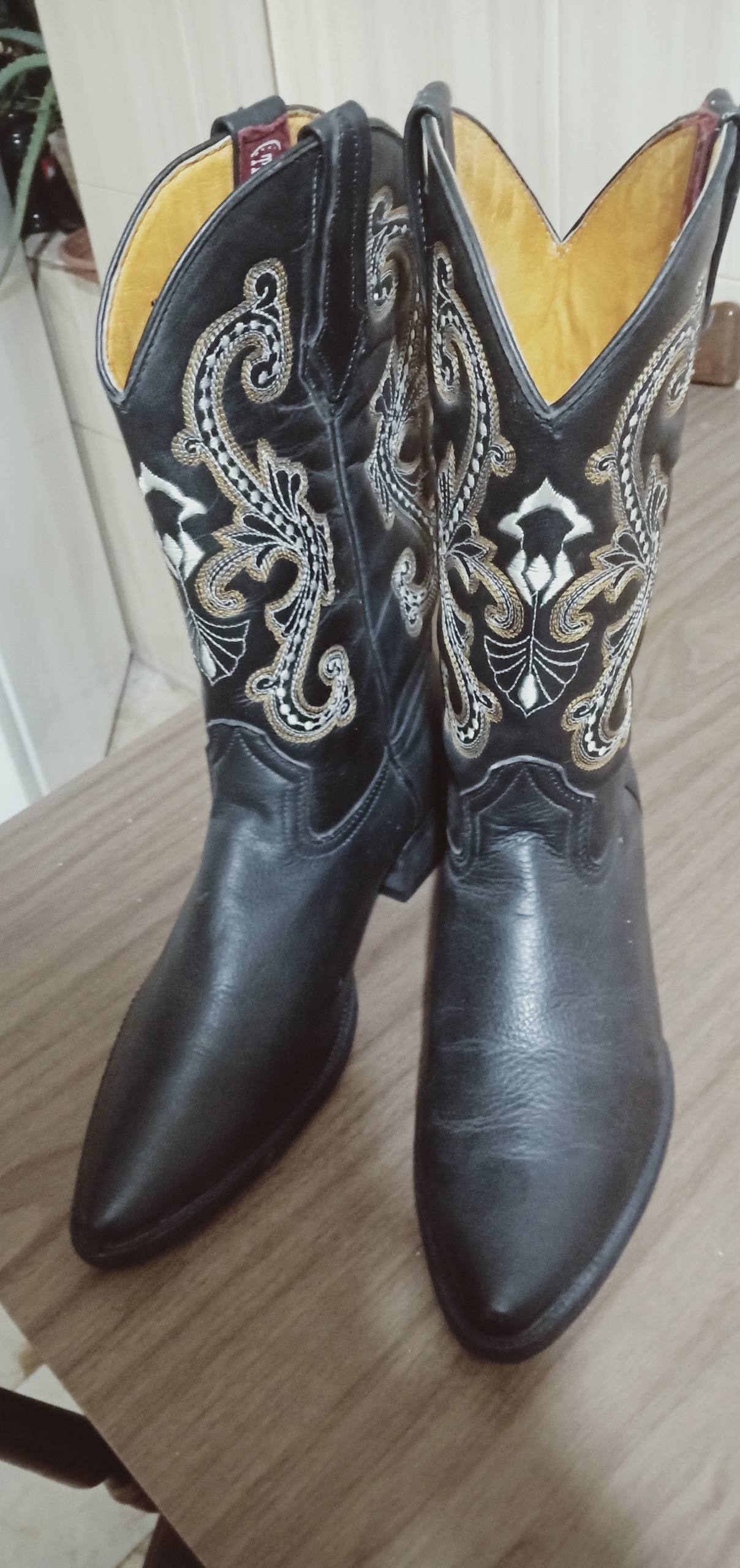 چکمه چرم مردانه وسترن (تکزاسی) امریکائی، نو، با استیچ شش باره و شیک دو رنگ سفید و طلائی (تصویر) روی چرم سیاه ، قیمت مقطوع نوزده میلیون و پانصد هزار تومان    19,500,000