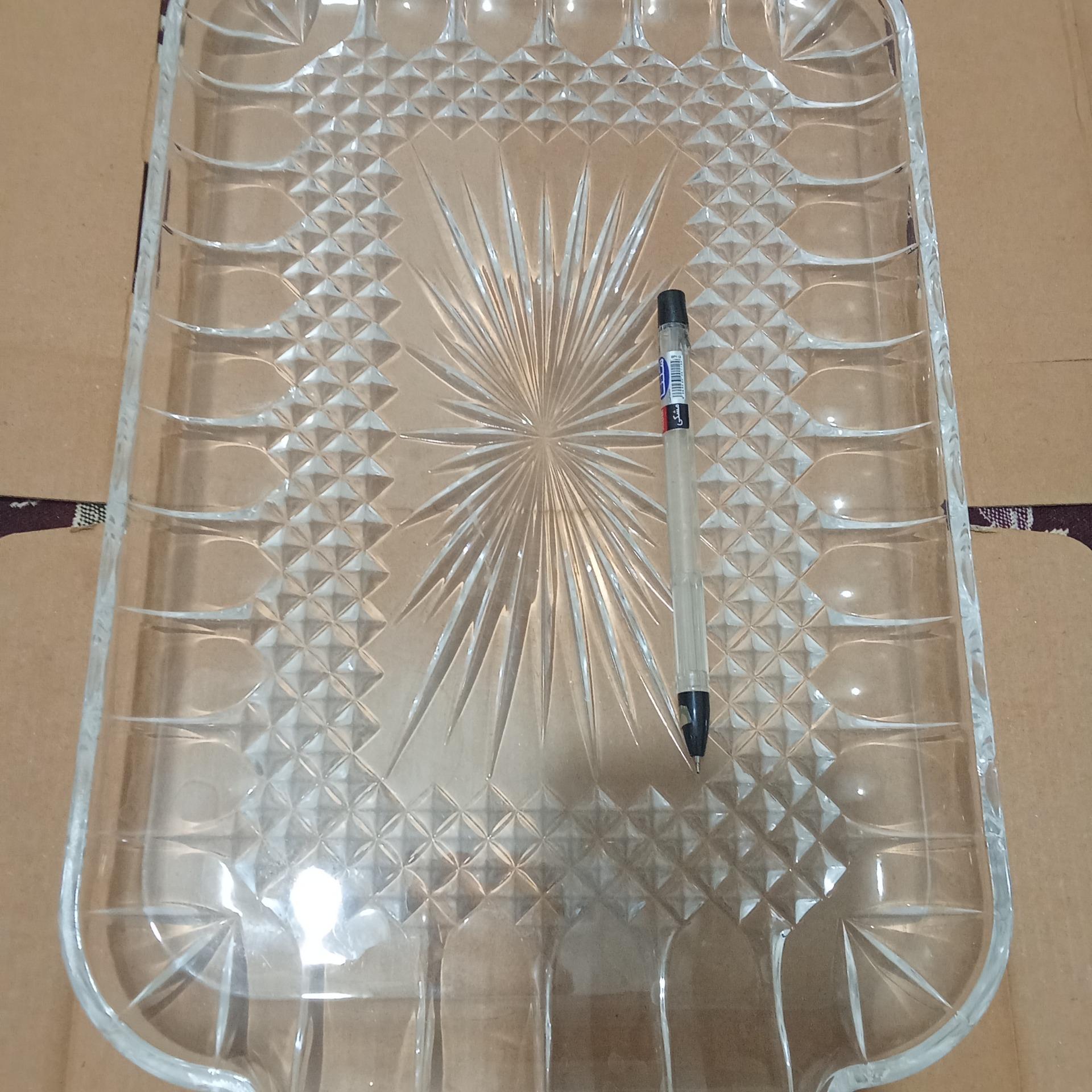 سینی کریستال ( مارک ندارد) و آب پریدگی بسیار جزئی که قابل مشاهده نیست