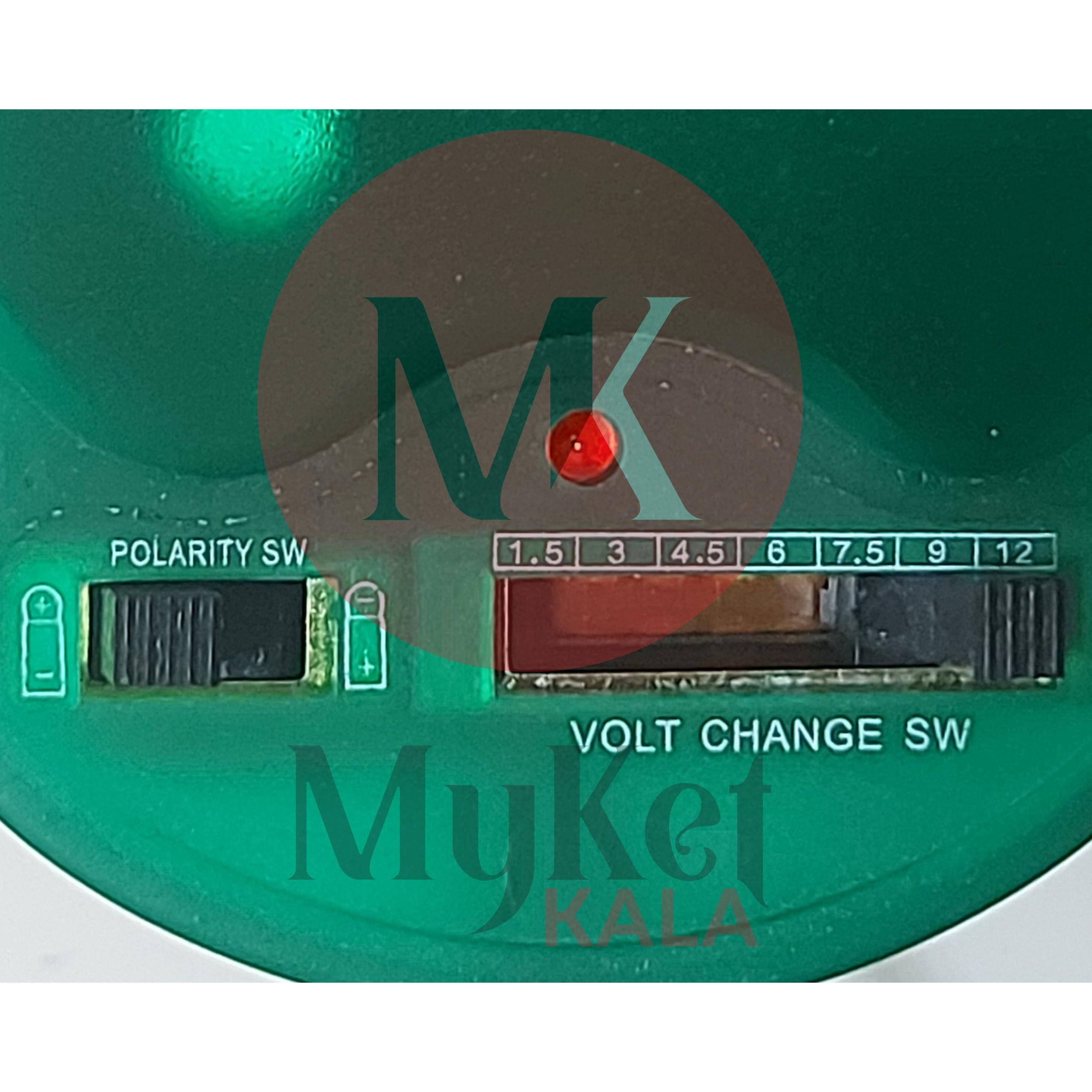 ولتاژ خروجی : 1.5 _ 3 _ 4.5 _ 6 _ 7.5 _ 9 _ 12