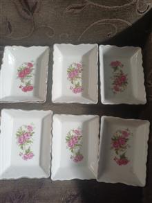 یک دست زیر سیگاری ایرانی و چینی ولی مارکهاش یکیه بدون لپ پریدگی و شکستگی و 3عدد سینی کوچک یا قند پهلو