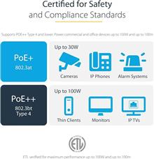 پشتیبانی از POE: هادیهای مسی رشتهای با ضخامت 24 AWG و سیمکشی دارای رتبه UL (E132276-A) تا 100 وات را برای دستگاههای PoE مانند تلفن VOIP و سیستمهای امنیتی پشتیبانی میکند؛ انطباق با استاندارد IEEE 802.3bt و DTE برای کاهش گرمایش کابل