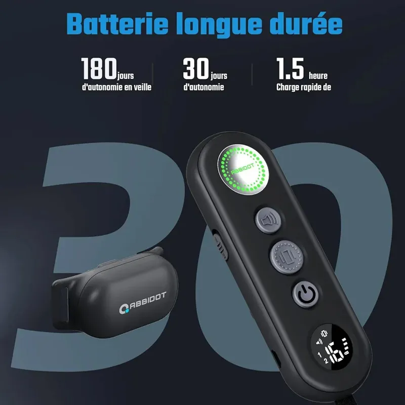 - همه عملکردهایی که نیاز دارید قلاده سگ برقی با کنترل از راه دور تا 180 روز زمان آماده به کار را ارائه می دهد و به سرعت در 1.5 ساعت شارژ می شود. کنترل از راه دور به راحتی در جیب شما قرار می گیرد. حالت آماده به کار برای صرفه جویی در مصرف باتری. علاوه بر این، می توانید از دامنه کنترلی افزایش یافته بهره مند شوید: تا 910 متر (بدون موانع) و 240 متر (با موانع). قلاده ضد آب IPX7 به شما این امکان را می دهد که حیوان خانگی خود را حتی در هنگام شنا آموزش دهید.