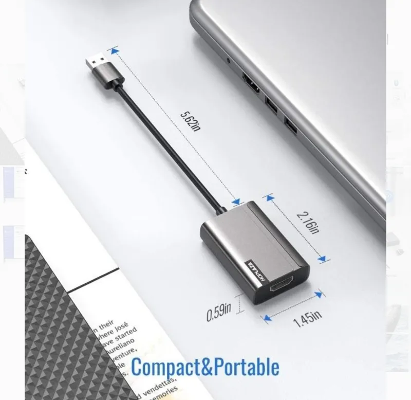 ویدیوی Full HD: این کارت گرافیک USB HDMI از انتقال فول اچ دی پشتیبانی می کند، وضوح می تواند تا 1920 x 1080P esam 60 هرتز باشد (با USB 2.0، وضوح به 800 x 600 محدود می شود). و سرعت انتقال USB 3.0 تا 5 گیگابیت بر ثانیه برای لذت بصری از طریق همگام سازی تصویر و ویدیو