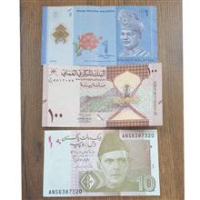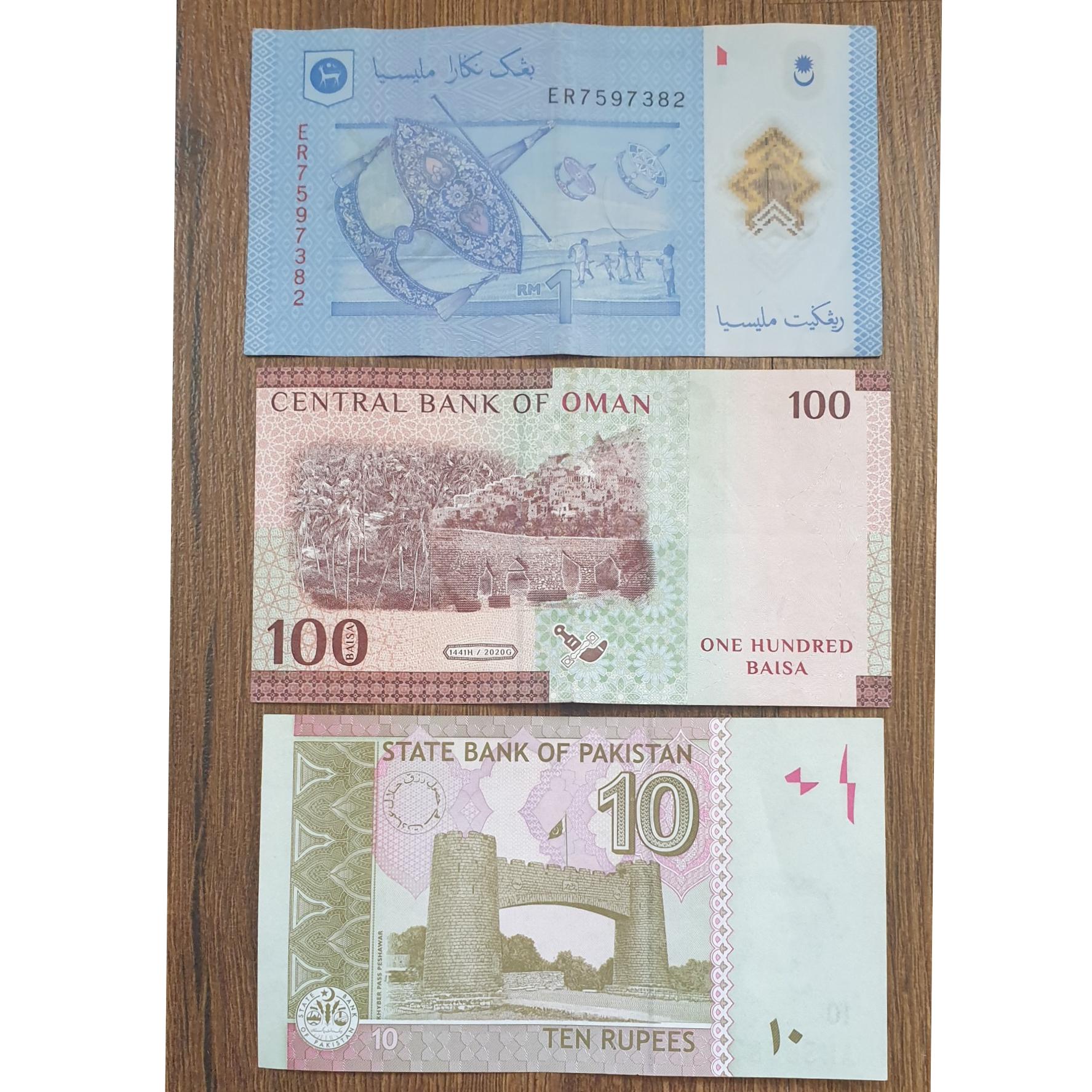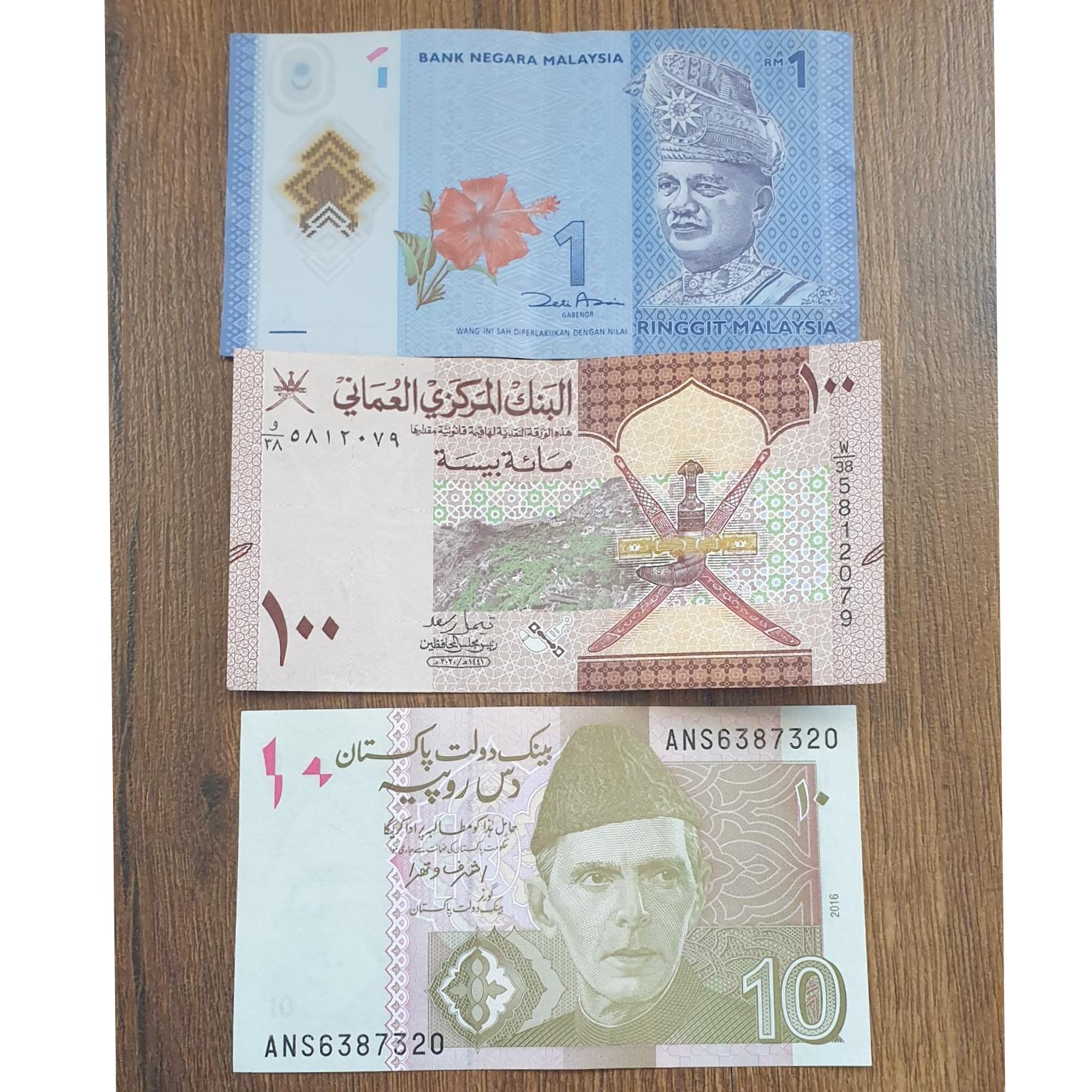 3 اسکناس خارجی(مالزی،عمان،پاکستان)