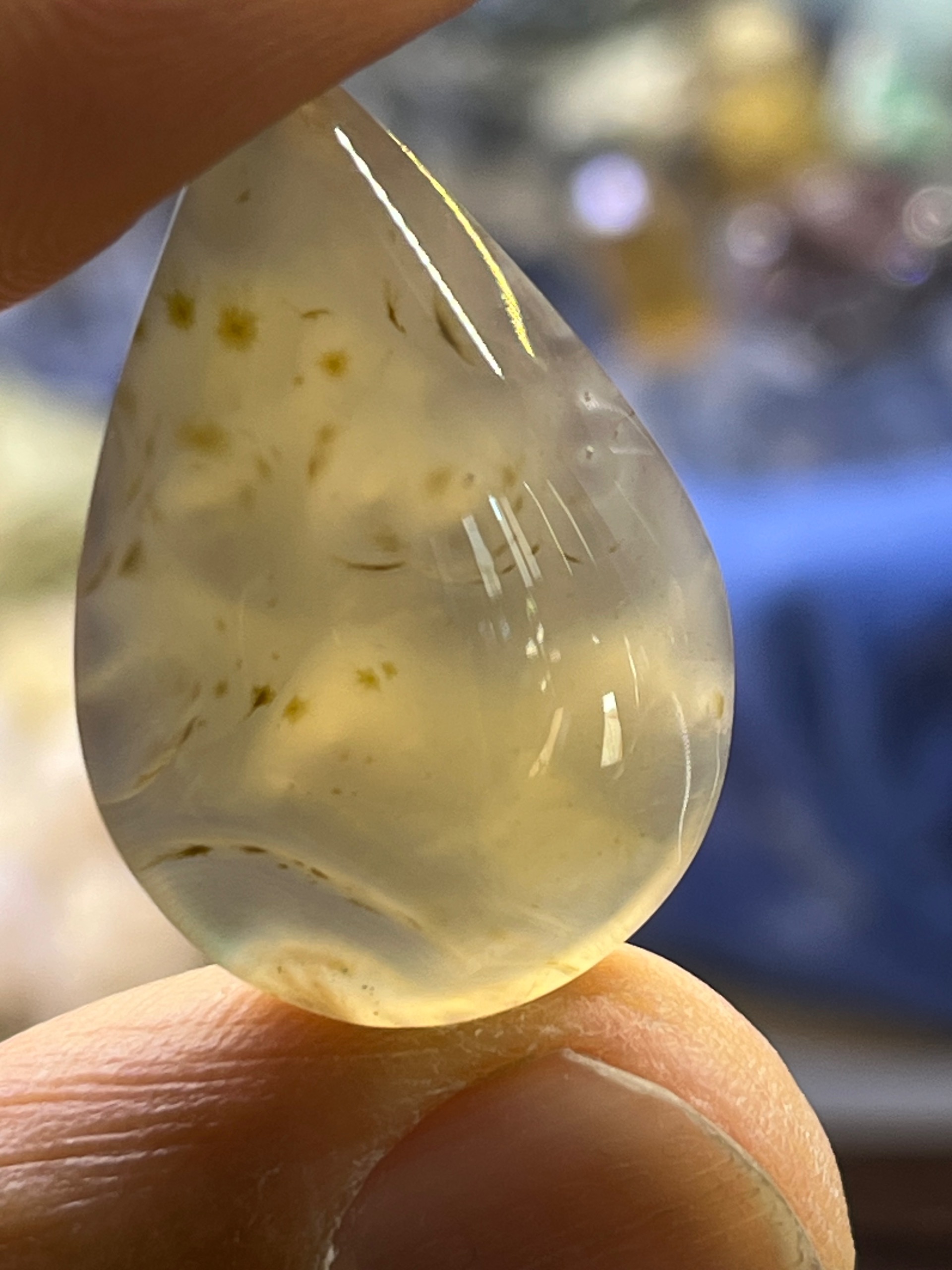 نگین عقیق عسلی نقش دار پر از قاصدک های ریز و نقوش ظریف رتایل سوزنی، کمیاب از نظر نقش، از خراسان جنوبی،