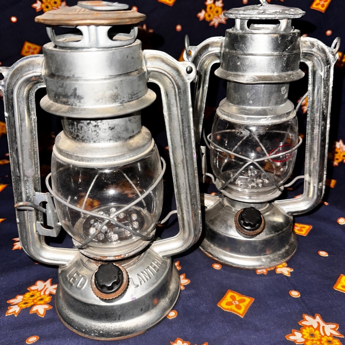 یک جفت فانوس قدمت دار که تبدیل شده به فانوس باتری خور ،