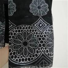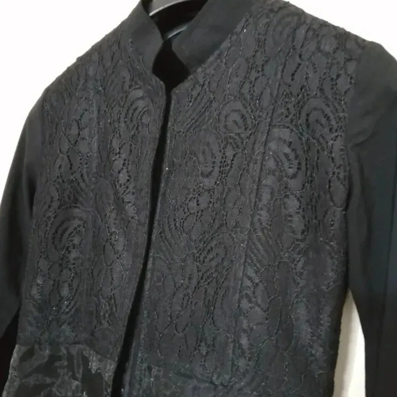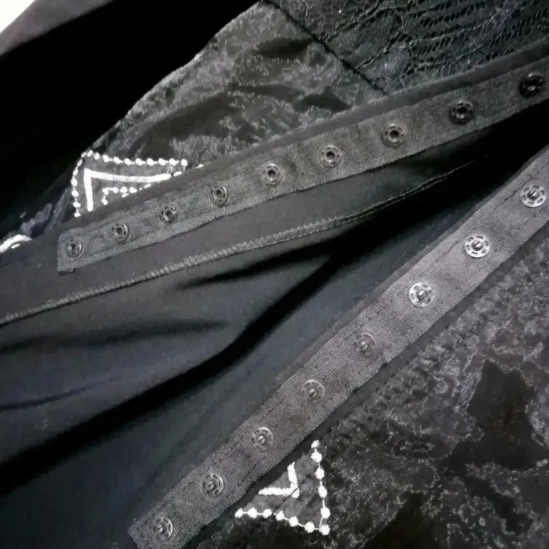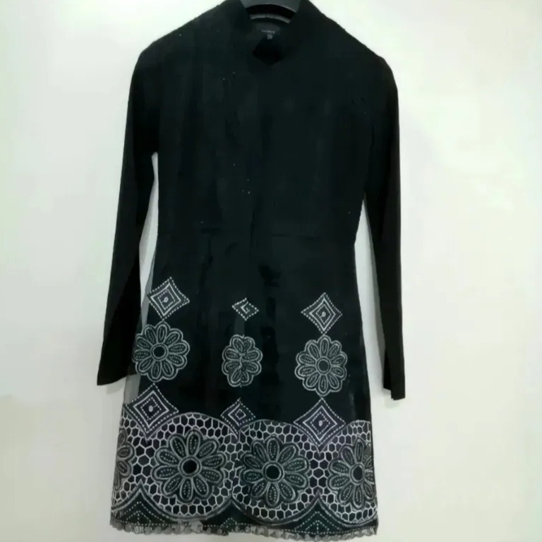 تمیز و سالم و شبیه نو هستش، برام کوچیک شده رنگ مشکی  بالاتنه گیپور، پایین تنه روی حالت حریر مانند گلدوزی شده دکمه مخفی