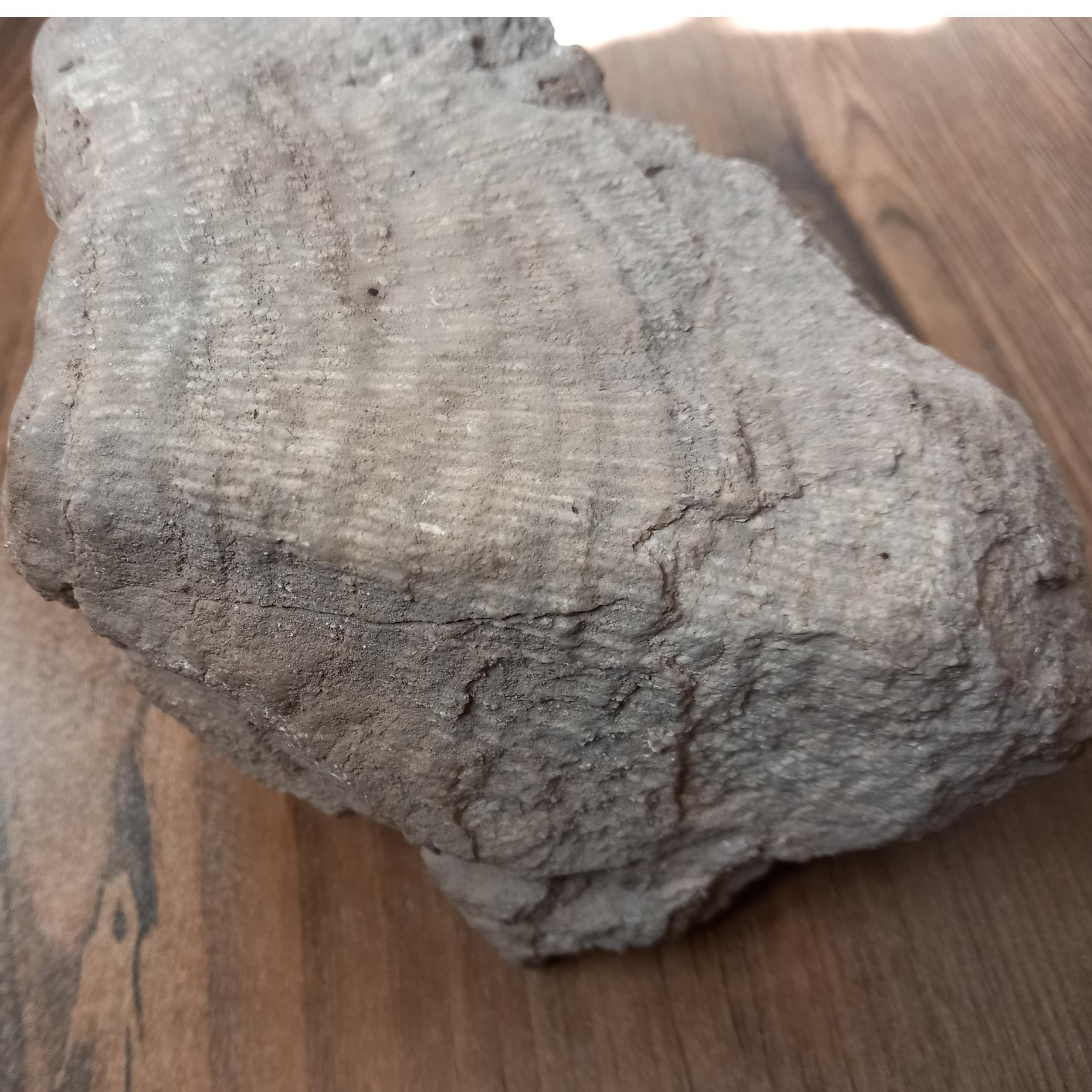 فسیل واقعی تنه درخت که خط های آوند های چوب درخت در دو بعد آن به آسانی نمایان است