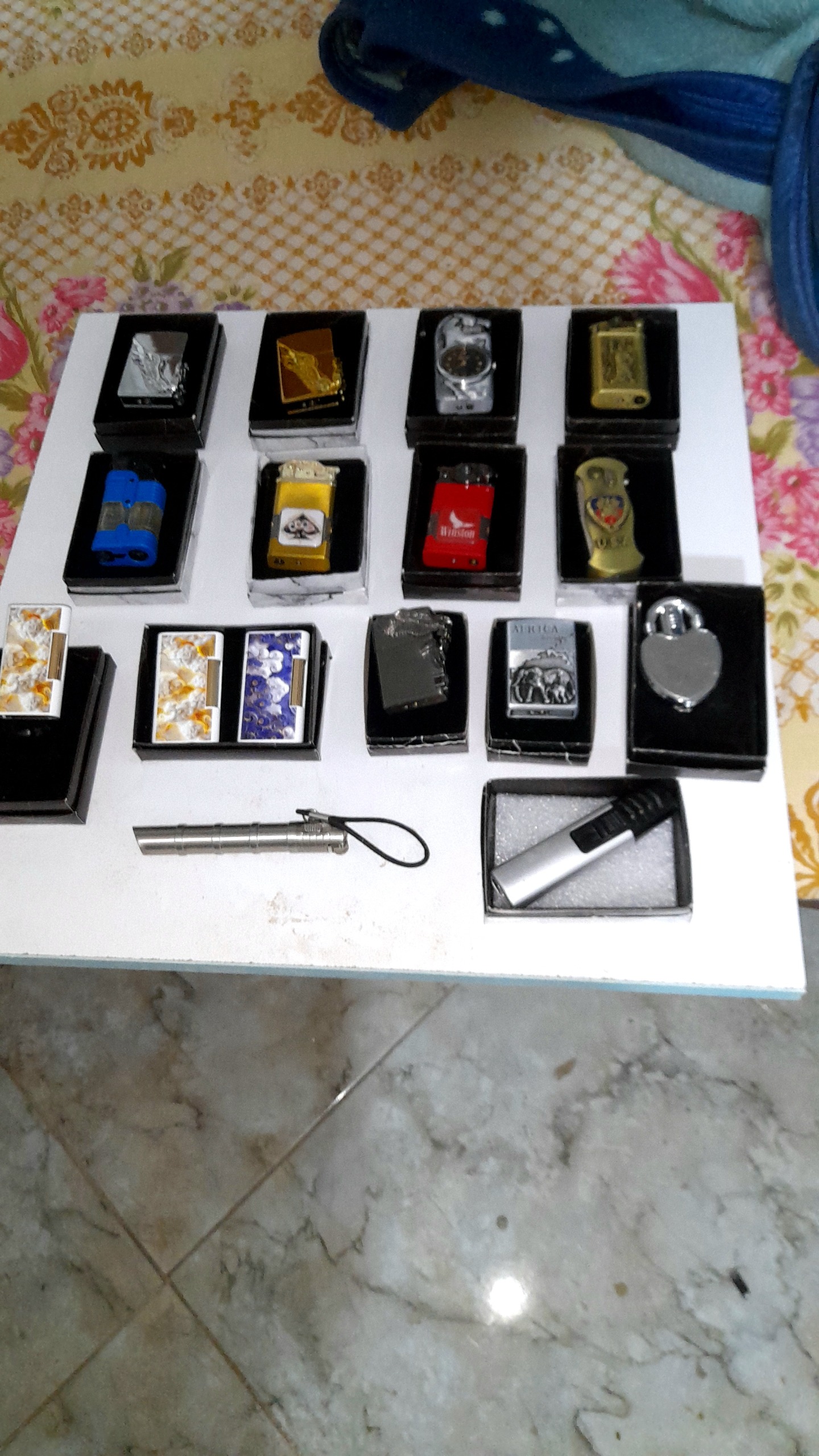 3عدد بنزینی،14 عدد انواع فندک های گازی.