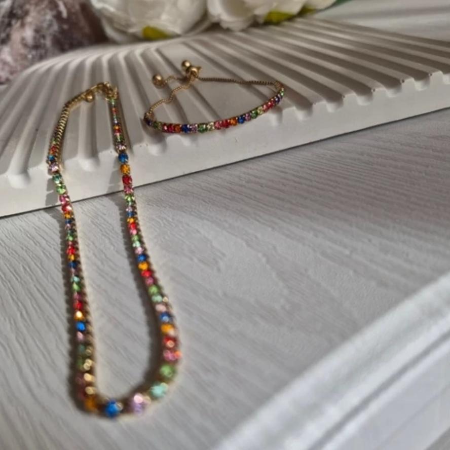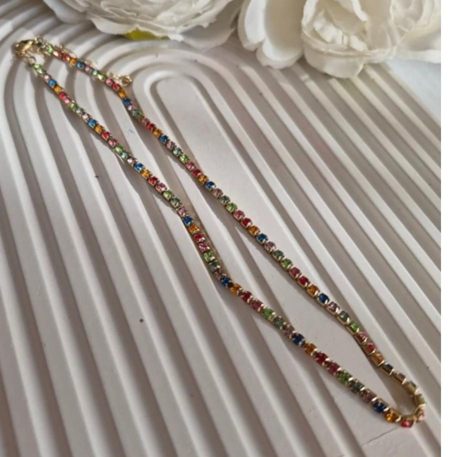 گردنبند تنیسی فول نگین چند رنگ