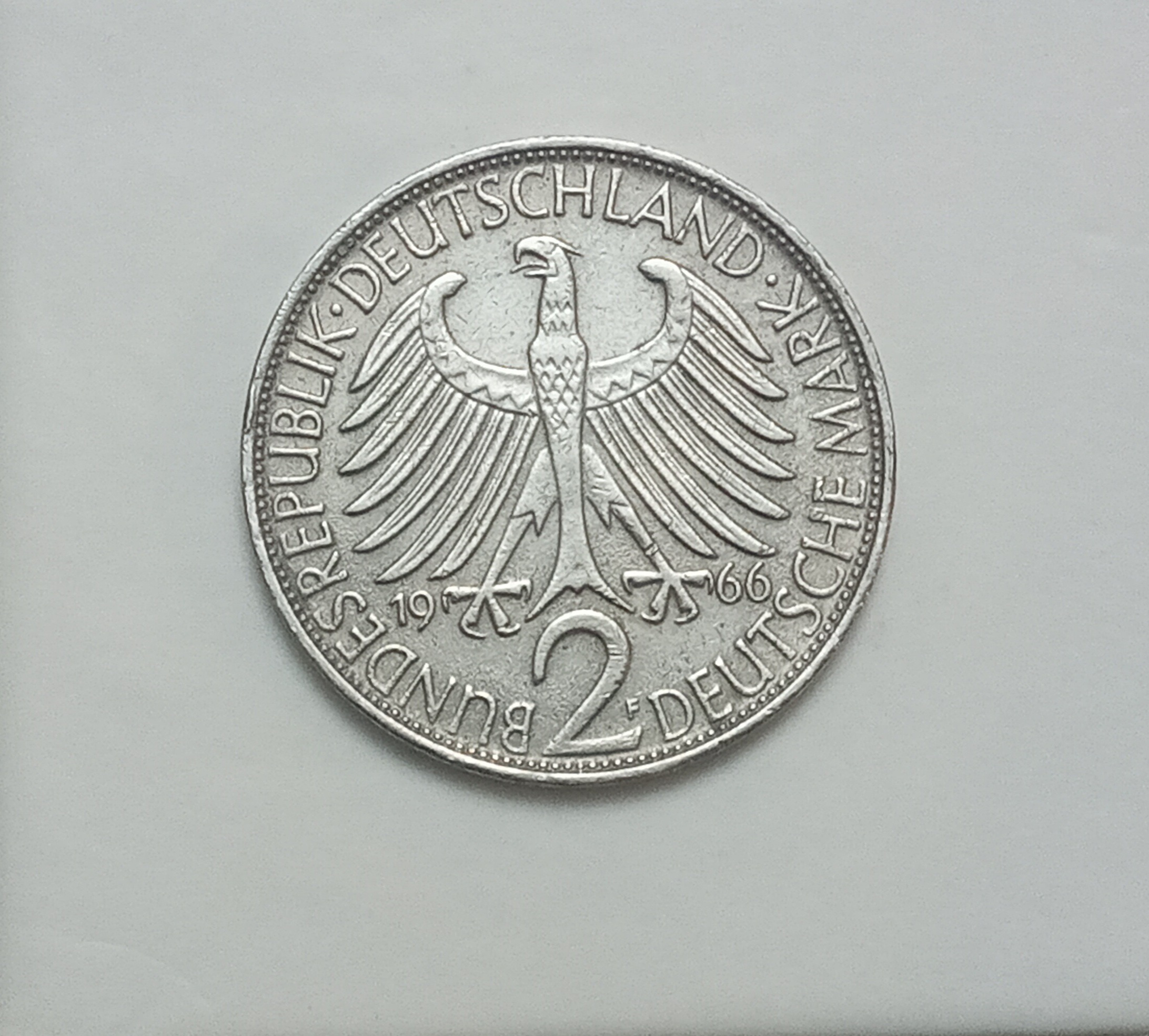 سکه یادبودی زیبا و کمیاب 2 مارک آلمان 1966