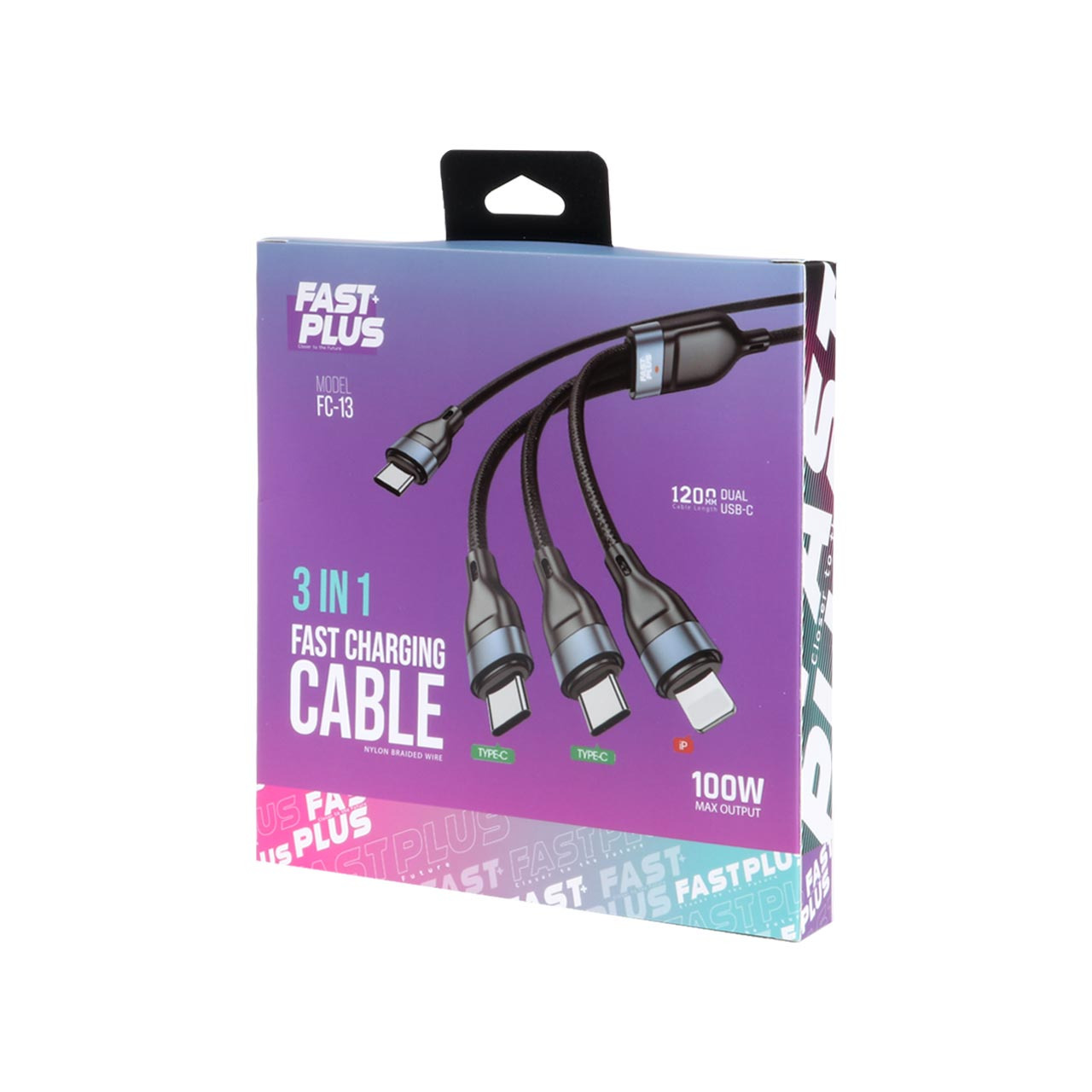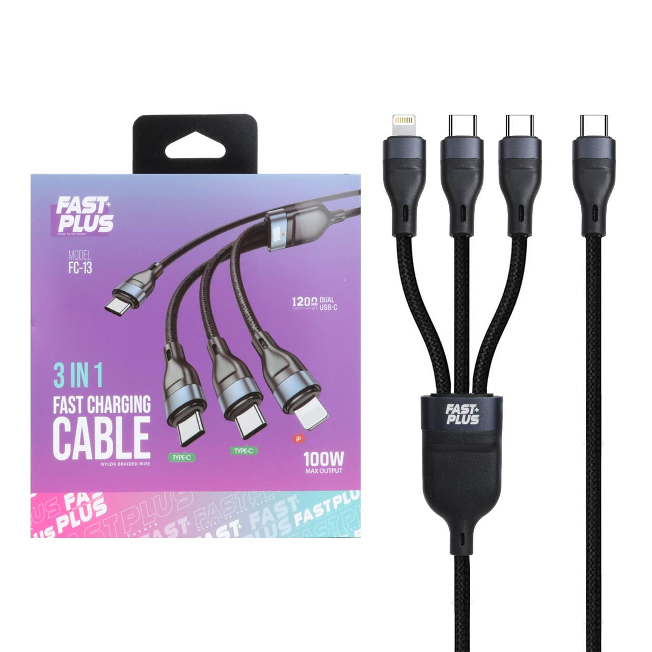 کابل شارژ 1.2 متری فست سه کاره Fast Plus مدل FC-13