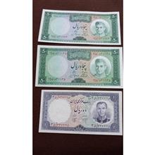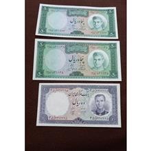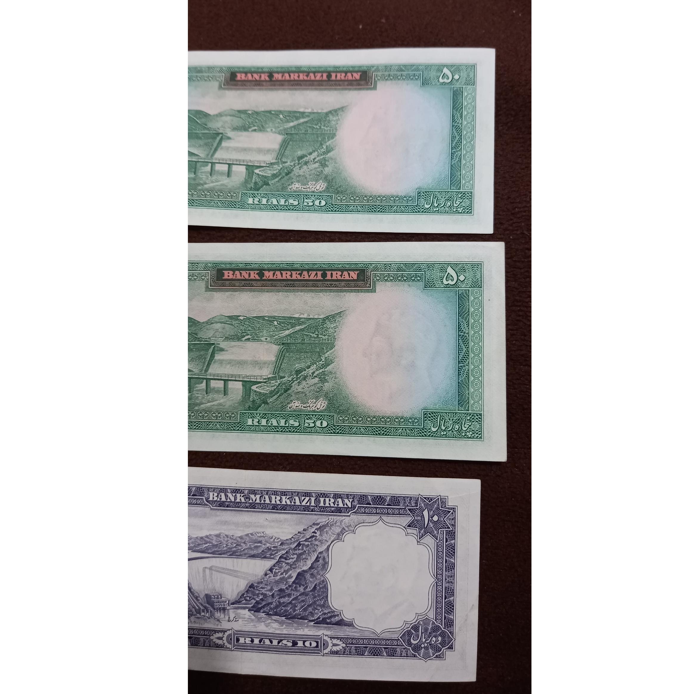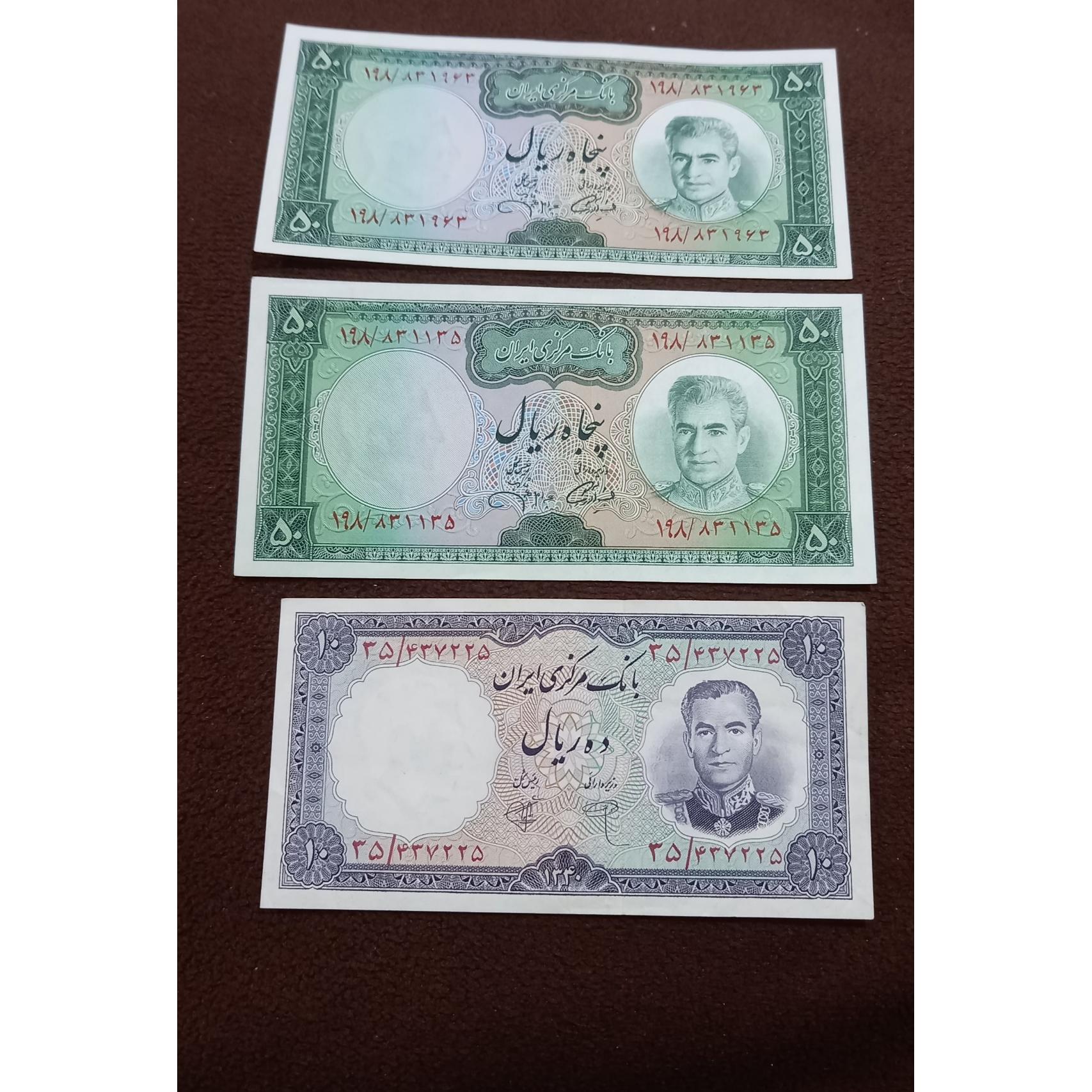 سه عدد اسکناس بانکی شاهی 50و10ریال