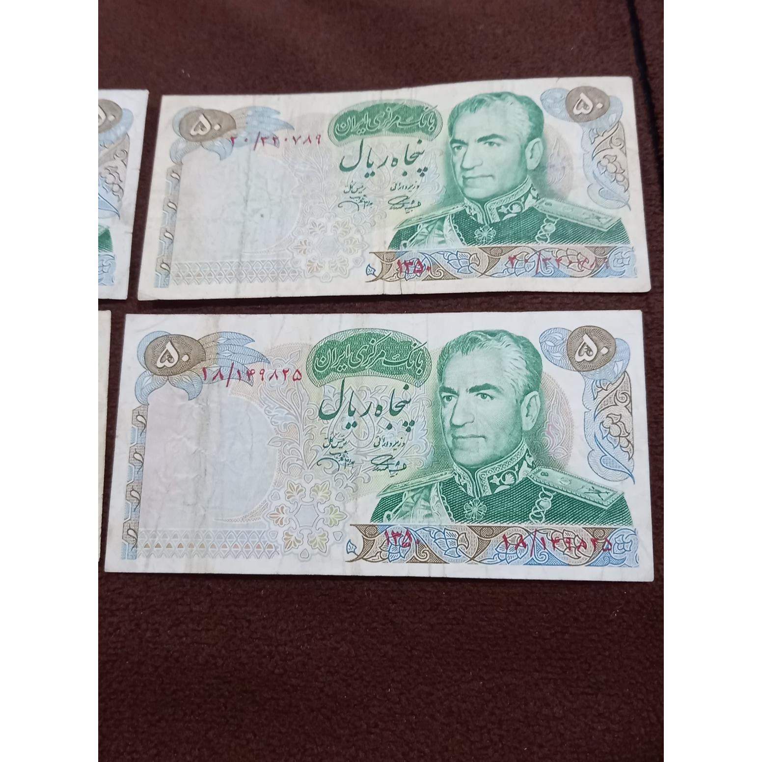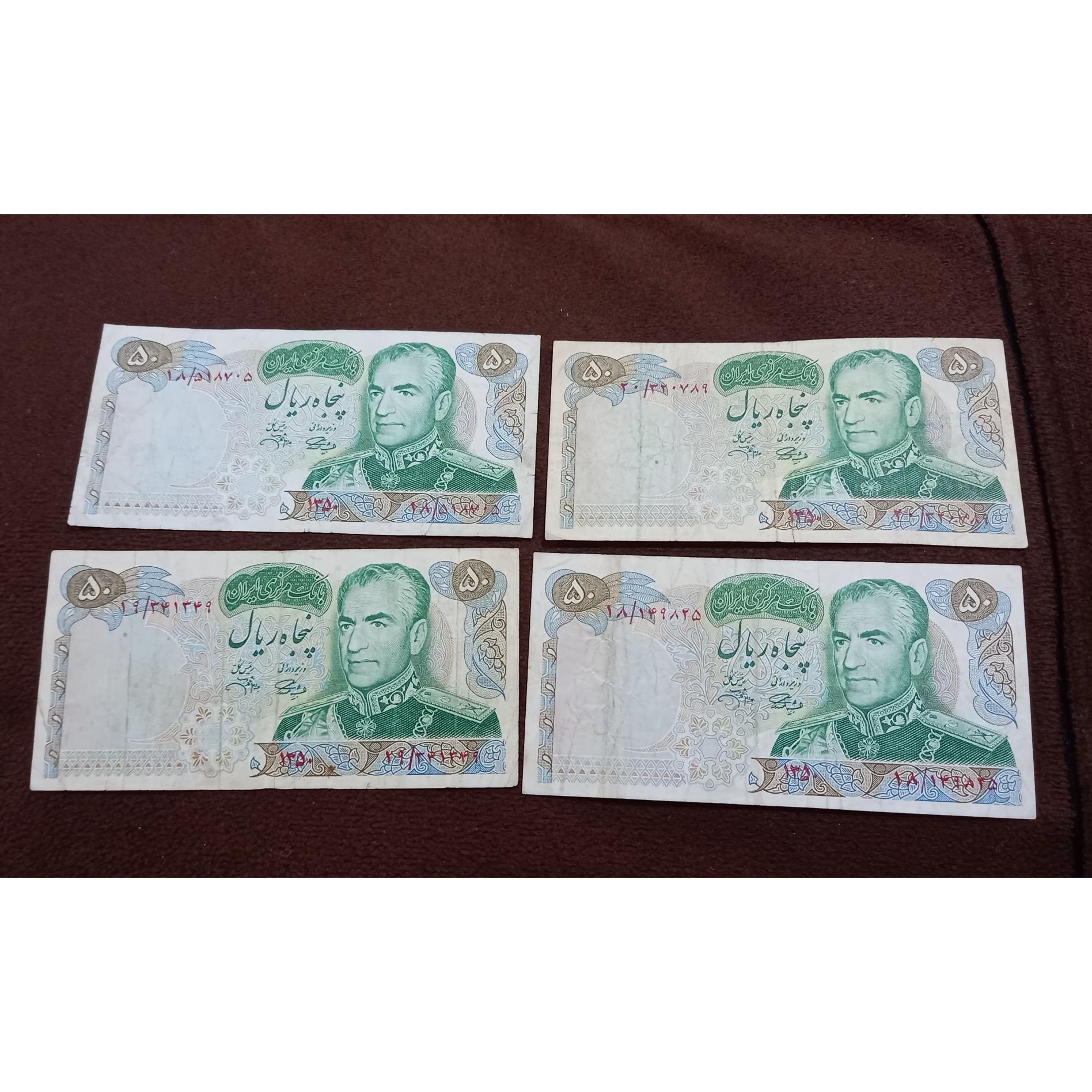 چهار عدد اسکناس 50ریال یادبود شاهی