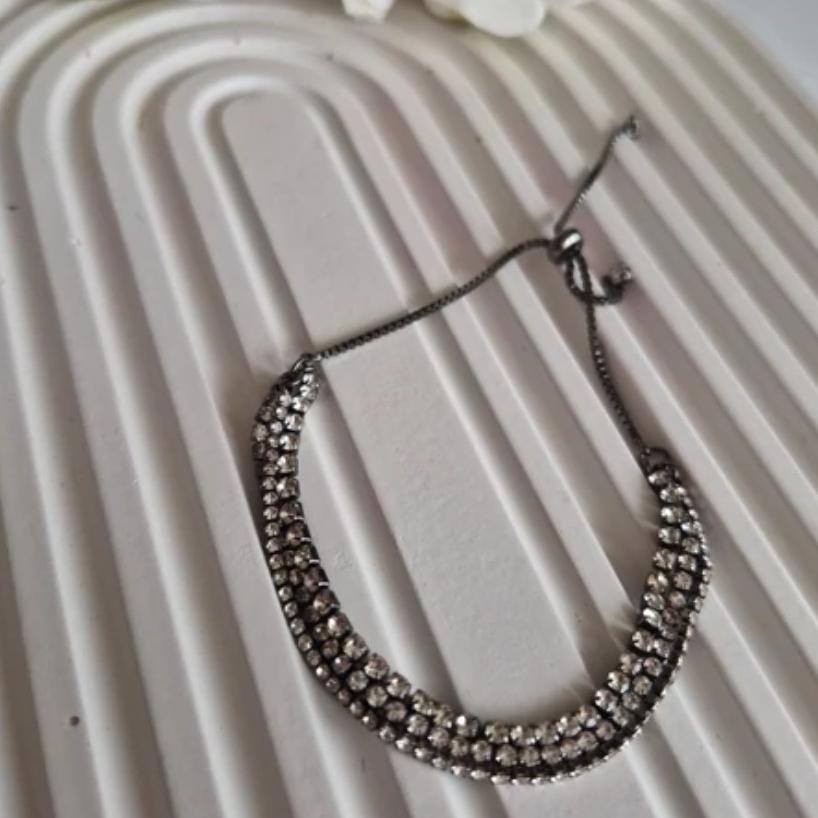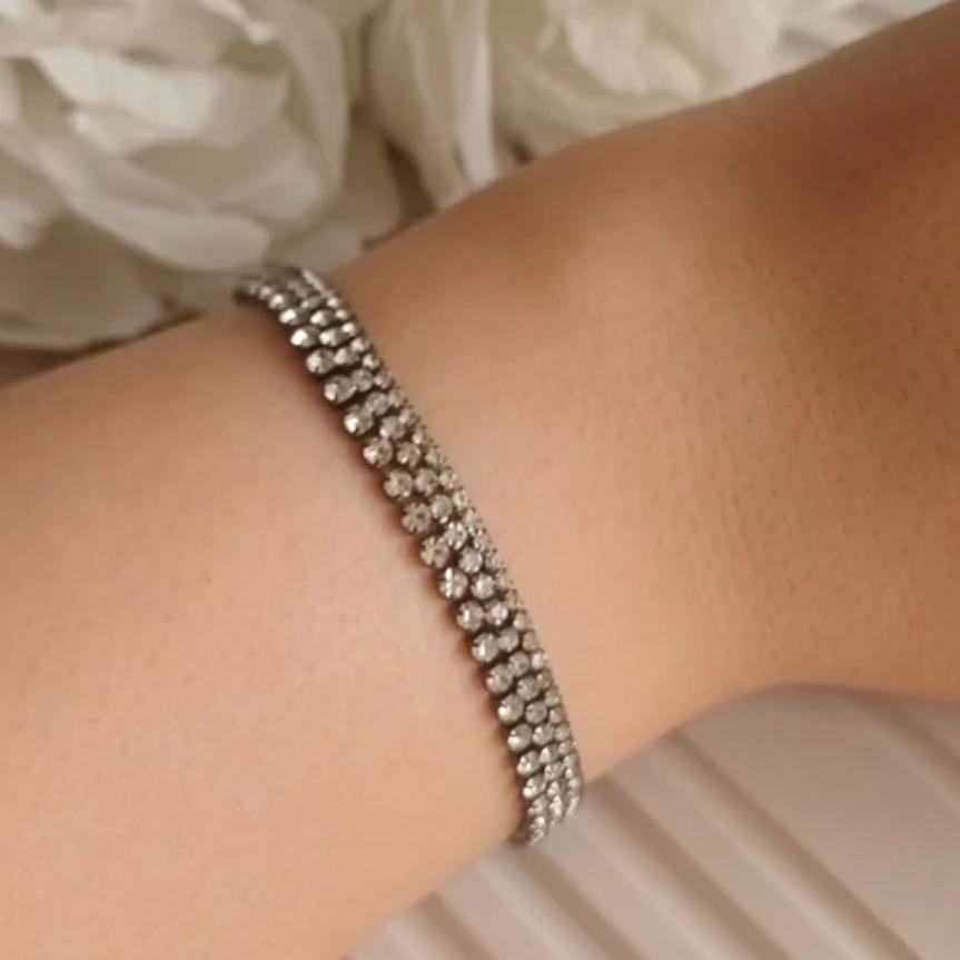 دستبند تنیسی 3 لاین با بند آسانسوری به رنگ دودی