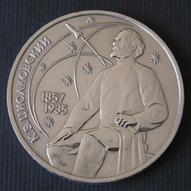 سکه یادبود 130 سالگرد تولد کنستانتین تسیولکوفسکی (دانشمند خودآموخته مسائل فضانوردی شوروی )