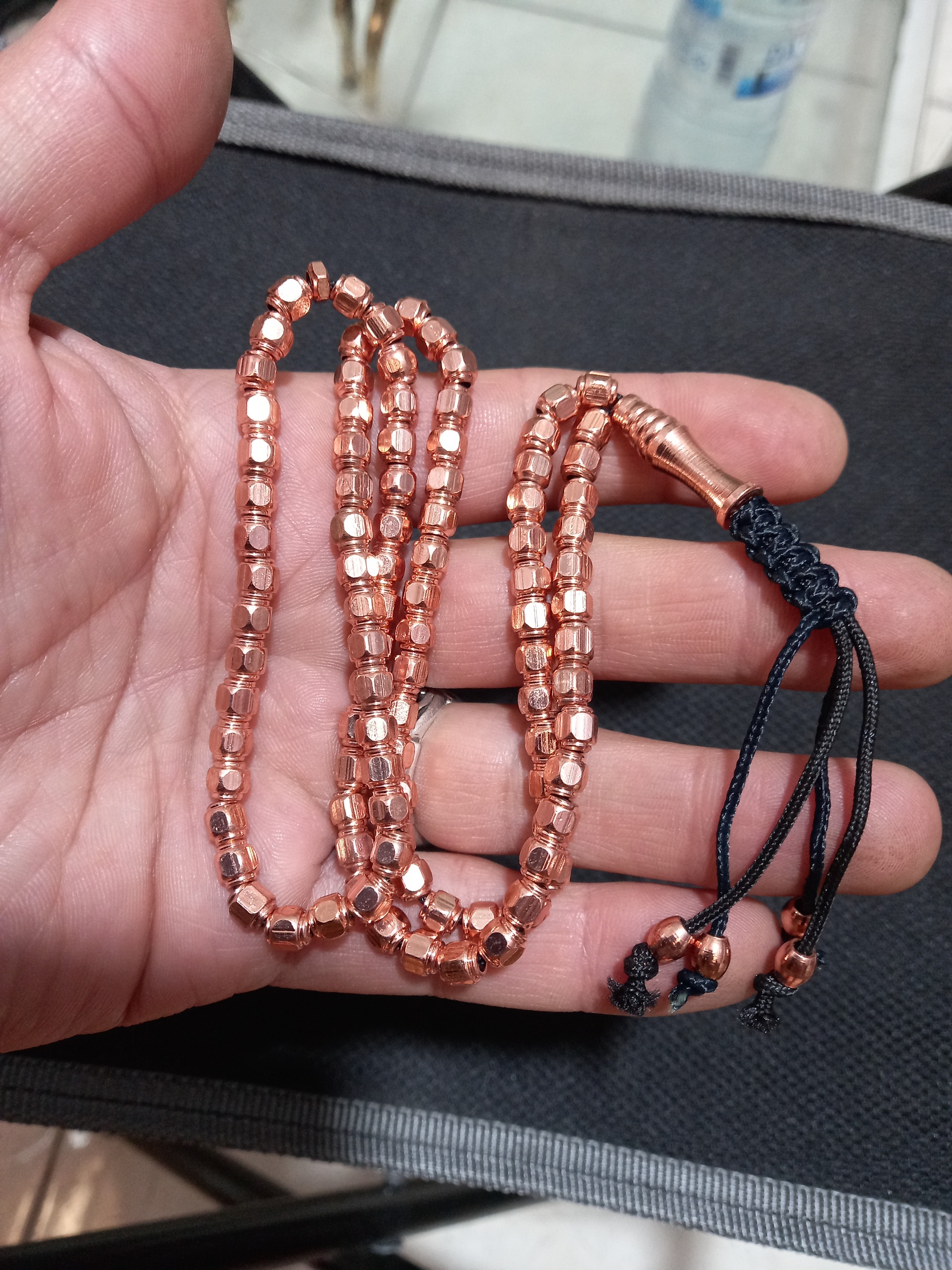تسبیح برنجی ابکاری مسی باطراحی بینظیر ودرجه1 وکیفیت خوب 101عددی خوشدست تراش شش گوش اندازه 30سانت هدیه وکادویی ماندگار